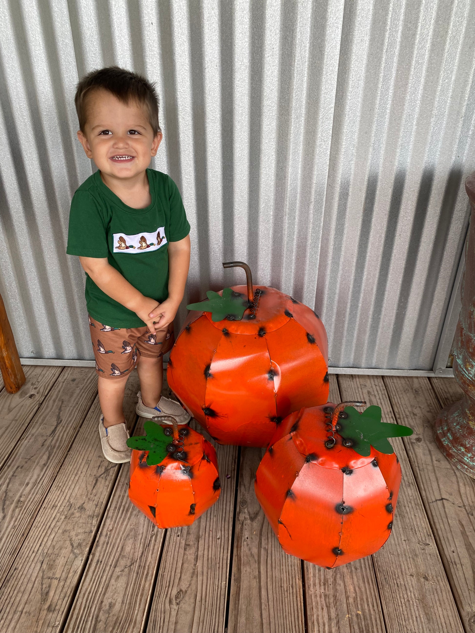 Add a touch of whimsy to your front porch with our 3pc Pumpkin Yard Art set! Made of sturdy metal, these pumpkins do not have jack-o-lantern faces, allowing for versatile decorating. A charming addition to any fall home decor.