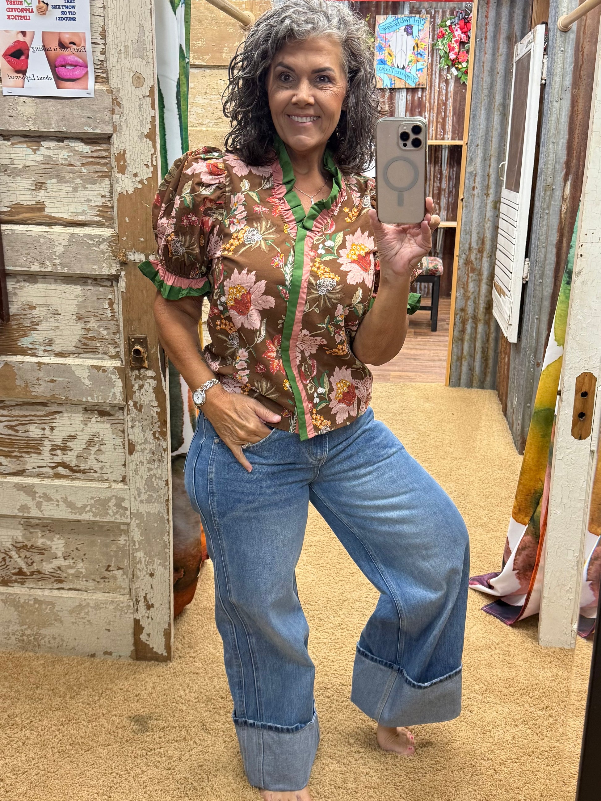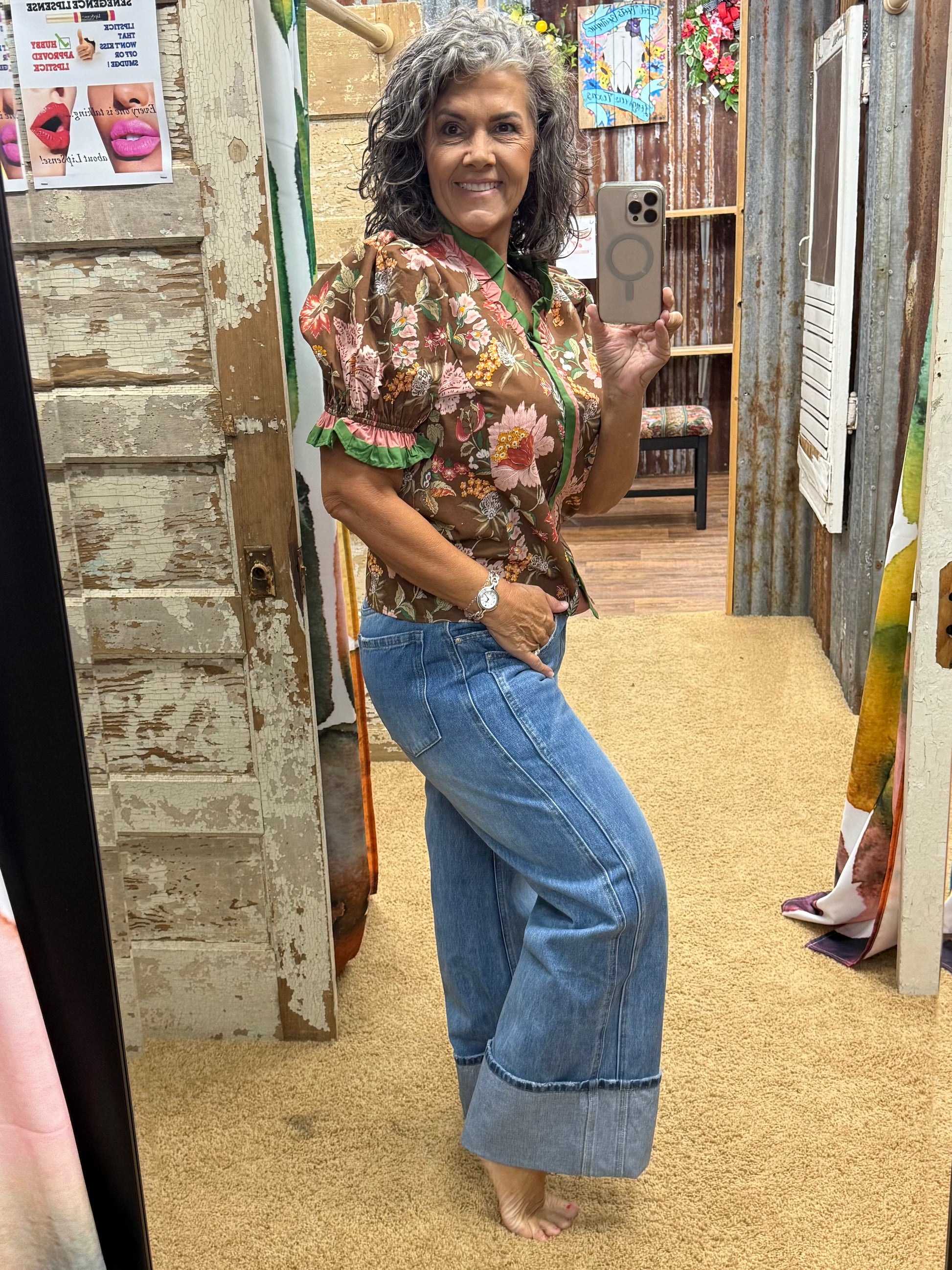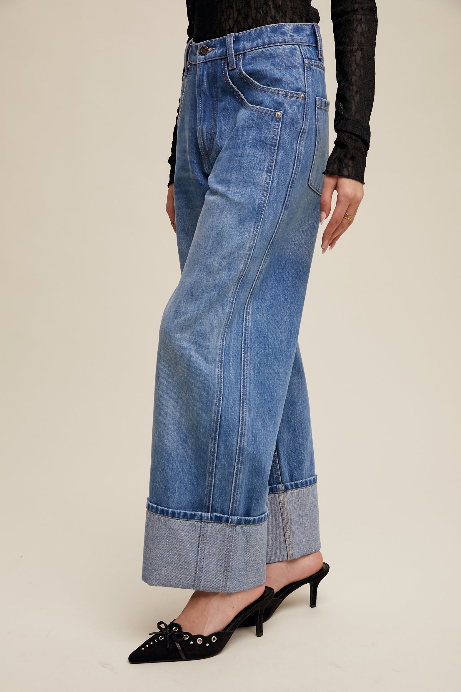 Cuffed Wide Leg Denim Jeans