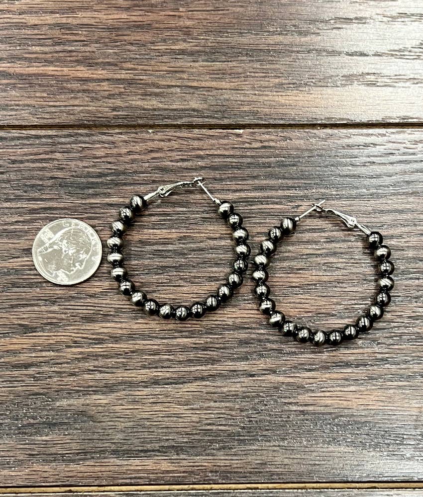 Add a touch of quirk to your style with our Polish Navajo Bead Hoop Earrings! These 45mm hoops feature a unique 6mm Polish Navajo Bead, adding a playful twist to a classic design. Lightweight and safe for sensitive ears, these earrings are perfect for any fun-loving fashionista. (French lock included.)