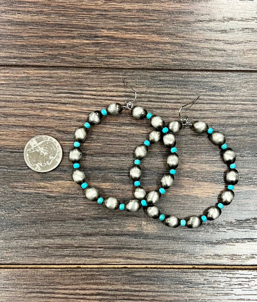 2.5" Long, Handmade 10mm Oval Navajo Bead & Synthetic Turquoise, 65mm Hoop Earrings