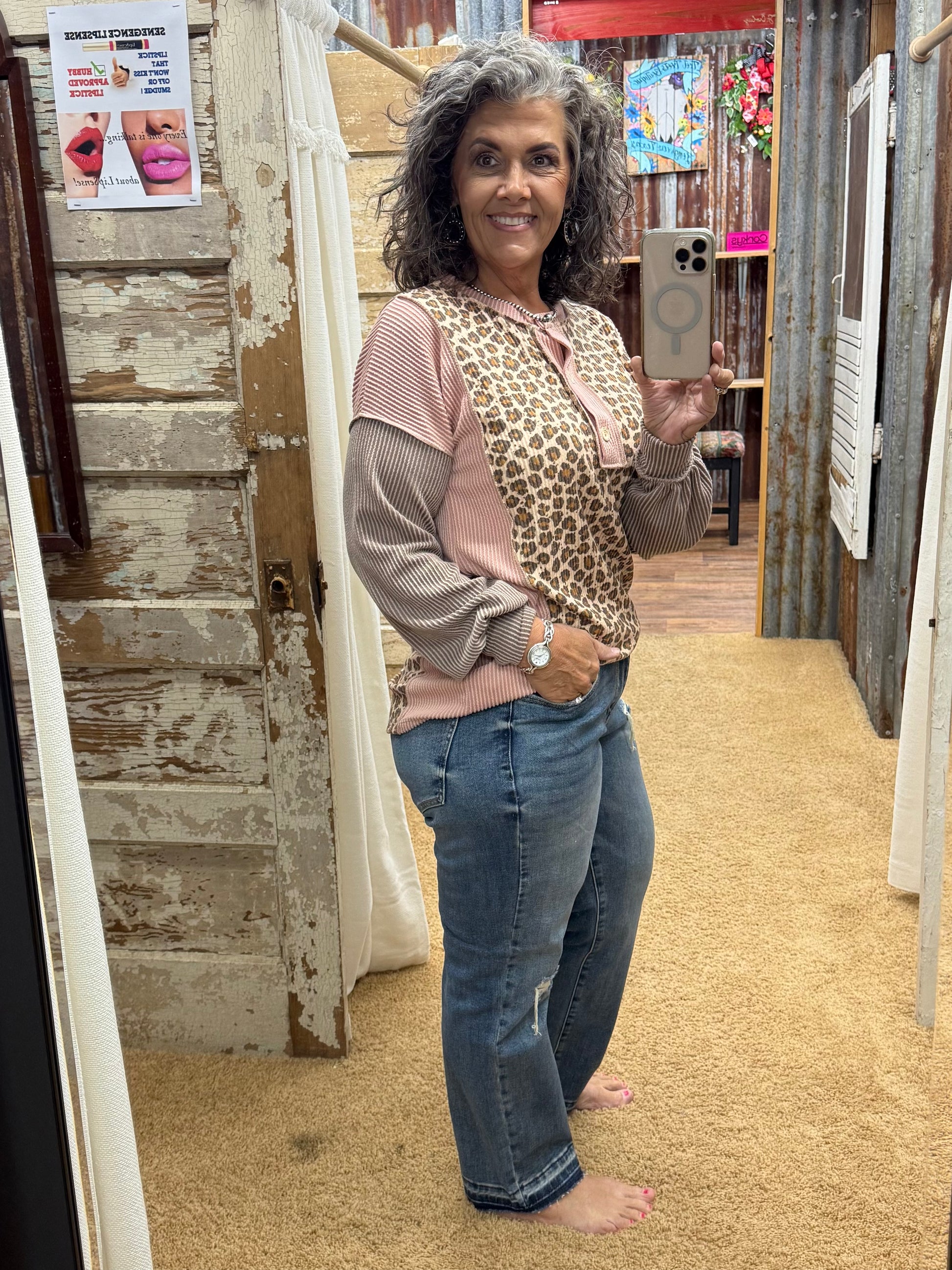 Add a playful twist to your wardrobe with the Animal Colorblock Top. Crafted from soft rib material, it features a round neckline, banded cuffs, and a trendy curved hem for a cozy fit. The unique animal and solid print combined with bold color blocking infuse a fresh, stylish vibe perfect for everyday fun.