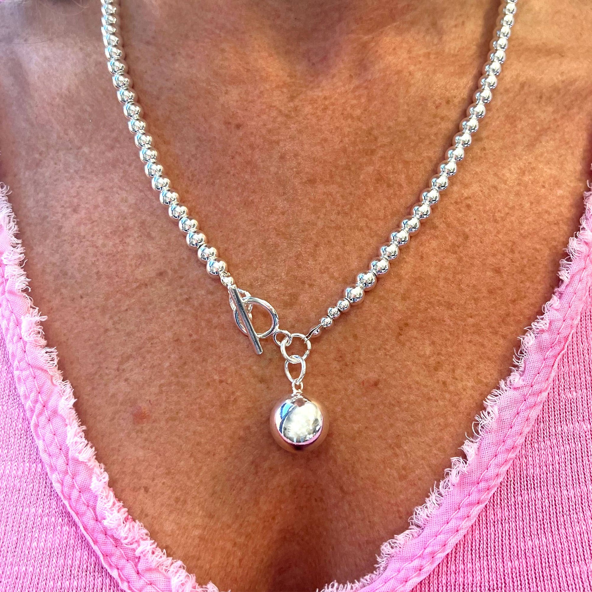 6mm ball necklace featuring larger ball pendant with feature T-Bar fastening Dimensions: Available in : Silver