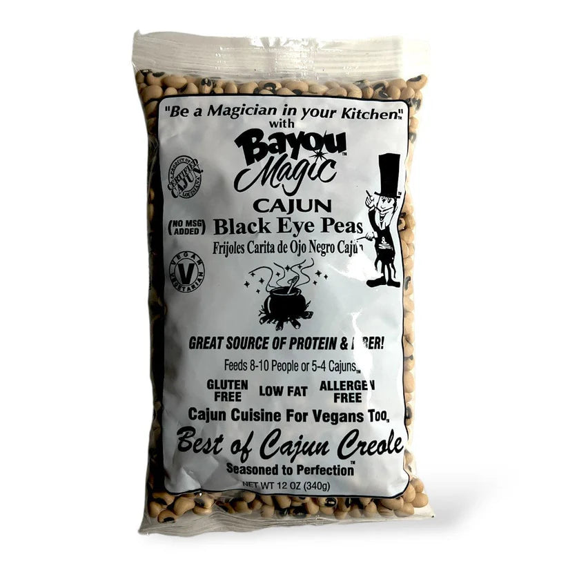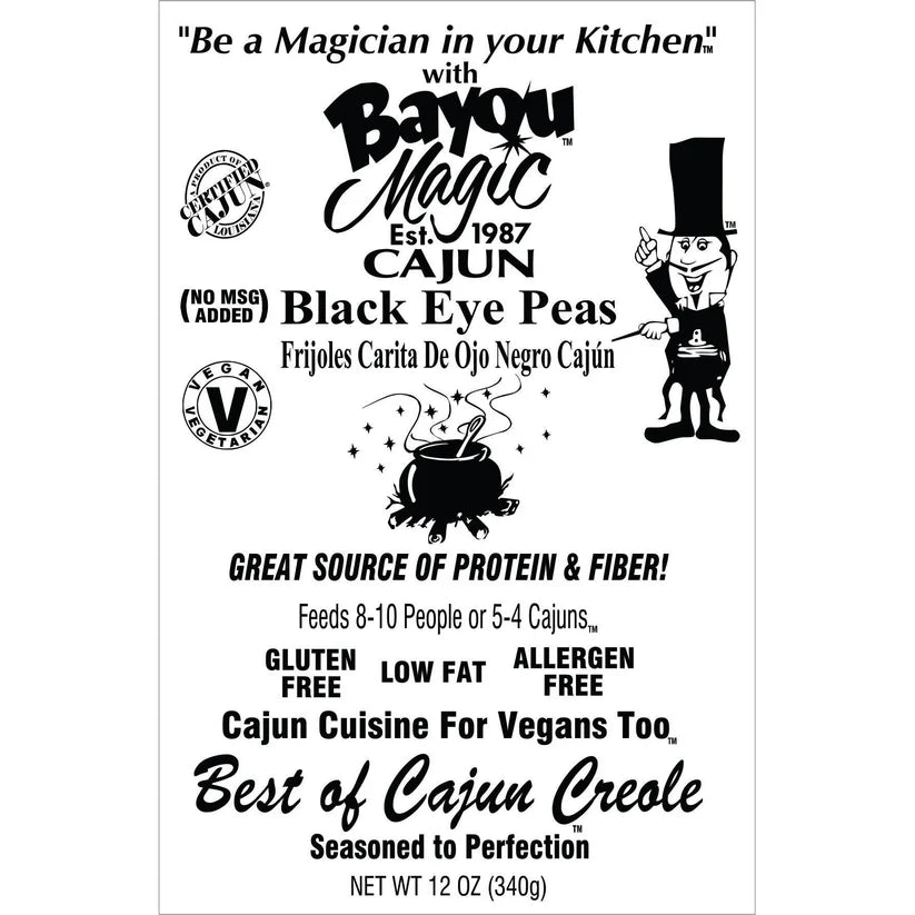 Be a Magician & Physician in your Kitchen™ with Bayou Magic Cajun Black Eye Peas. Beans are heart healthy, brain healthy, high protein & high fiber! Black Eye Peas are eaten throughout the year in Cajun country and are believed to bring luck when eaten on New Years Day.