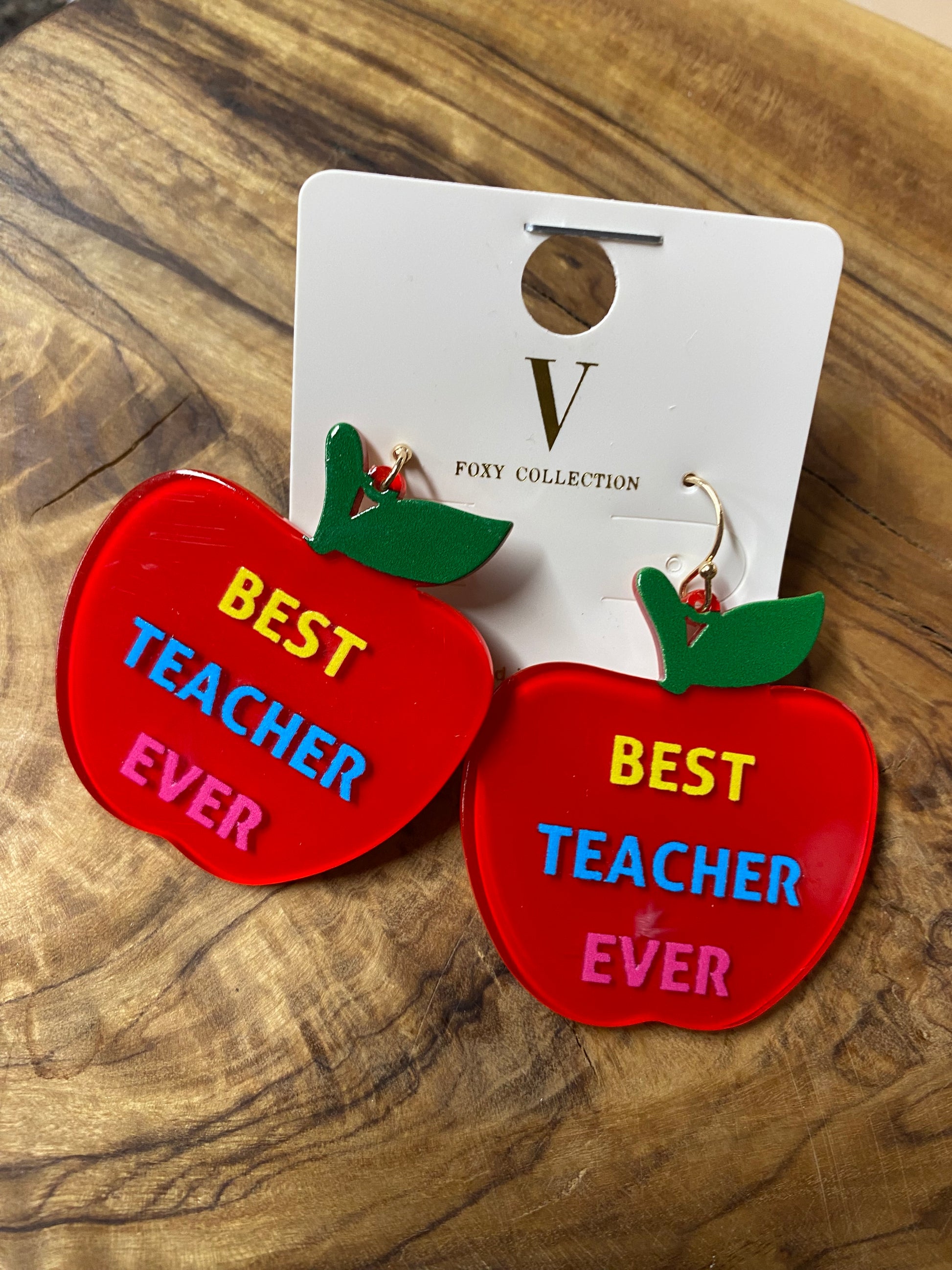 Show your appreciation for the BEST Teacher EVER with these fun apple-shaped dangle earrings! Perfect for adding a touch of quirky style to any outfit, these earrings will surely make any teacher feel special. Cheers to the BEST teacher EVER!