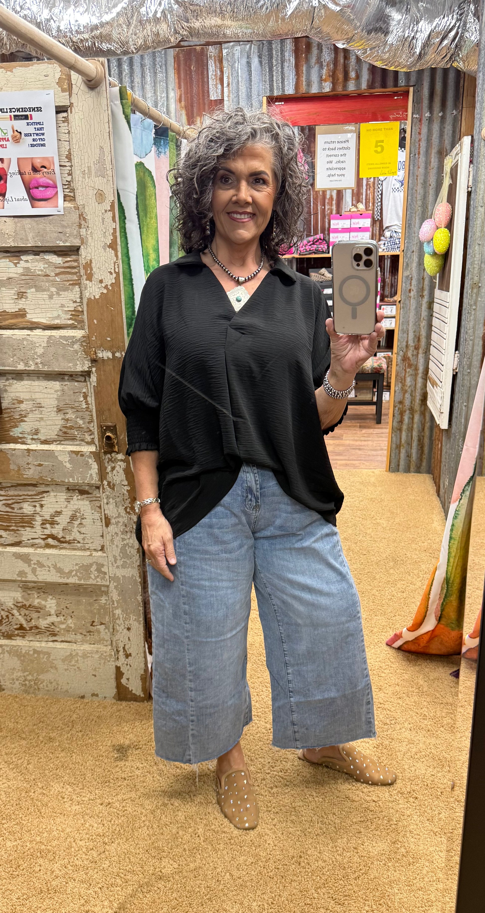 Black Smocked Sleeve Top