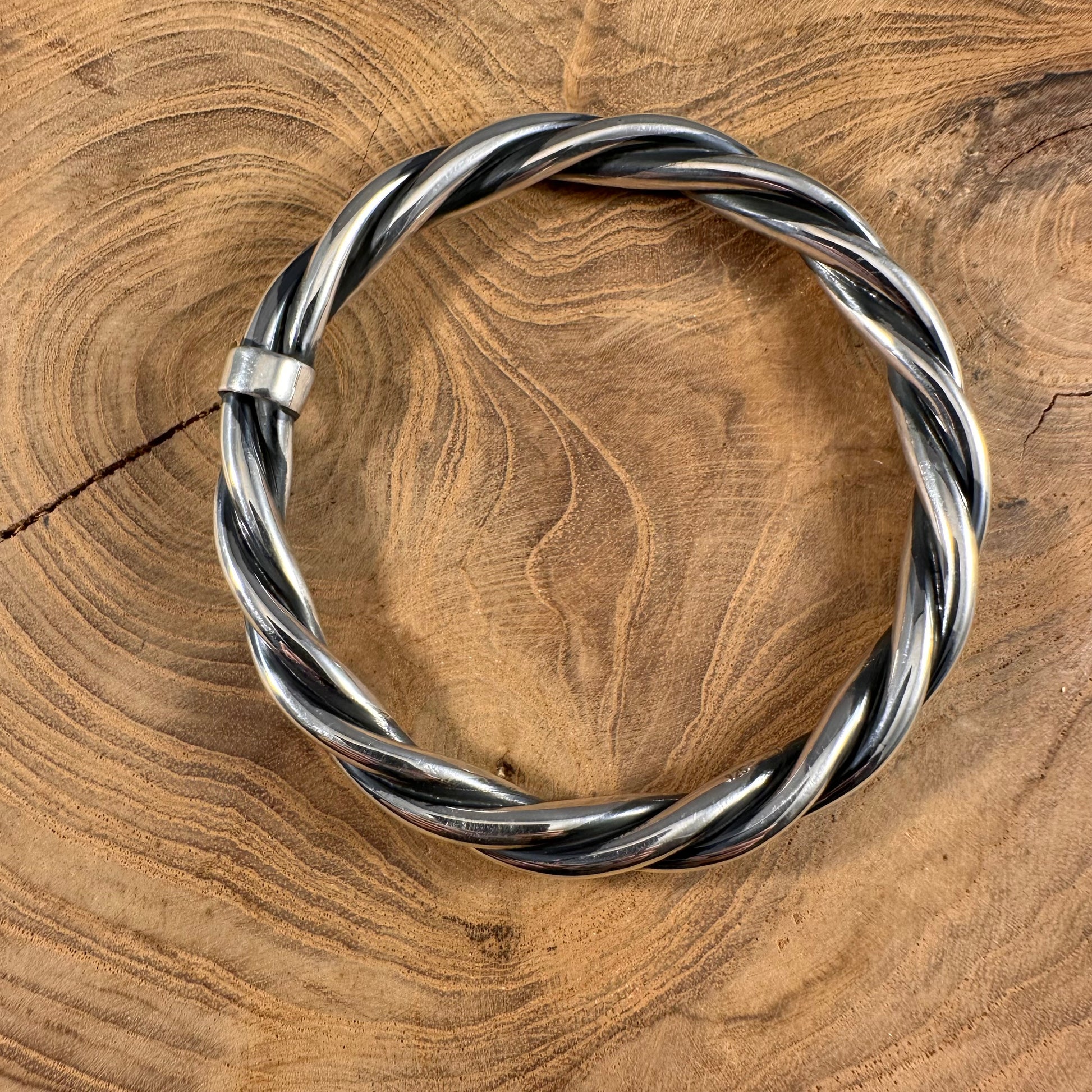 Crafted from sterling silver, the BOHO SOL Large Twist Braided Bangle T4222 features an intricate twisted braid design that combines elegance with artisanal detail. Its substantial size makes a bold statement while maintaining a refined, versatile look suitable for both casual and formal wear. This durable piece offers lasting shine and a sophisticated touch to any jewelry collection.