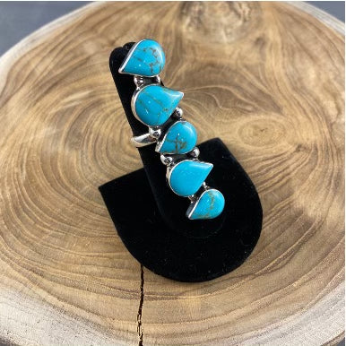 Boho Sol Sterling Silver Long Turquoise Teardrop Adjustable Ring T555