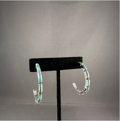BOHO SOL Turquoise Chicklet Hoop Sterling Earrings T1462
