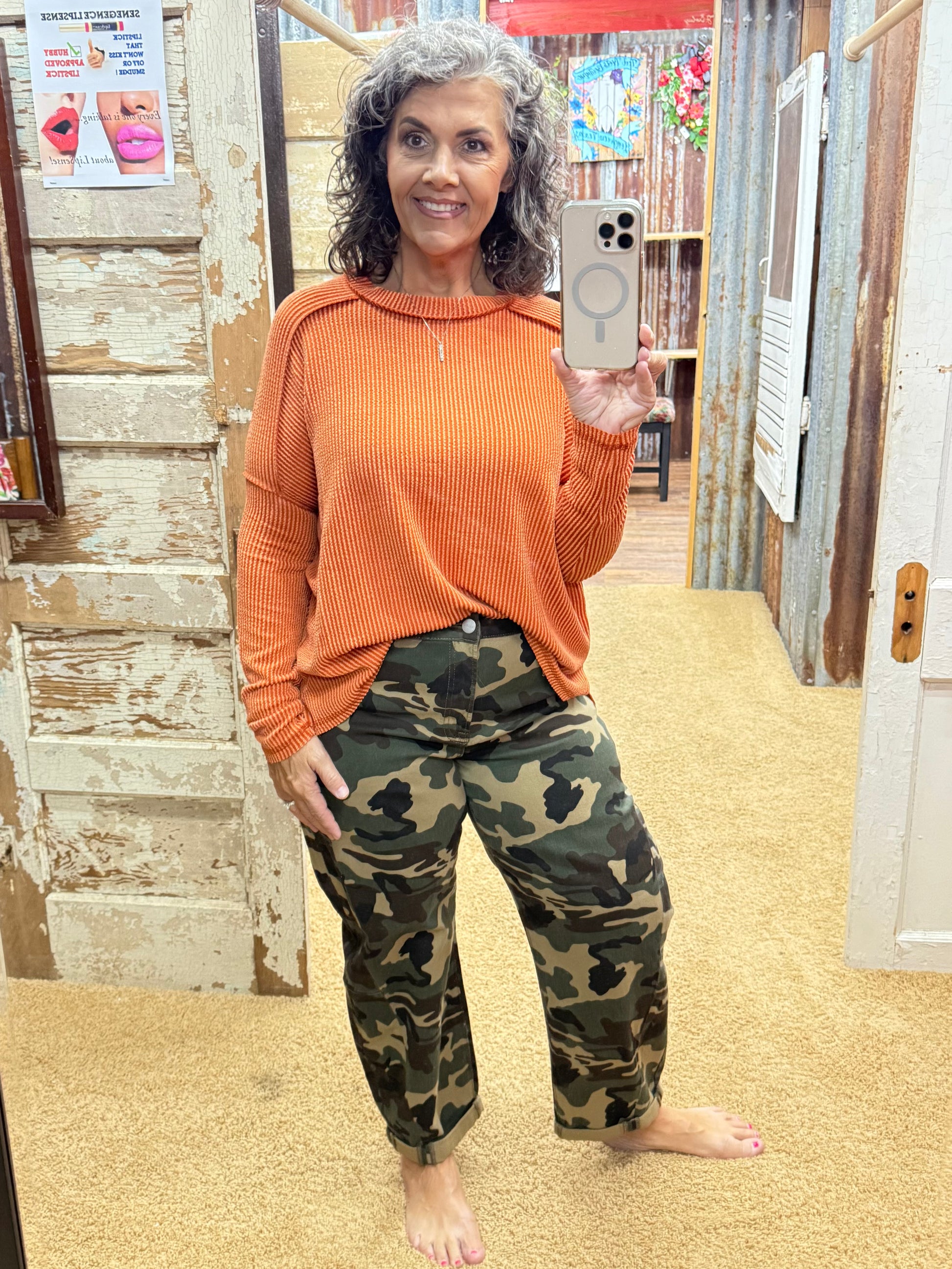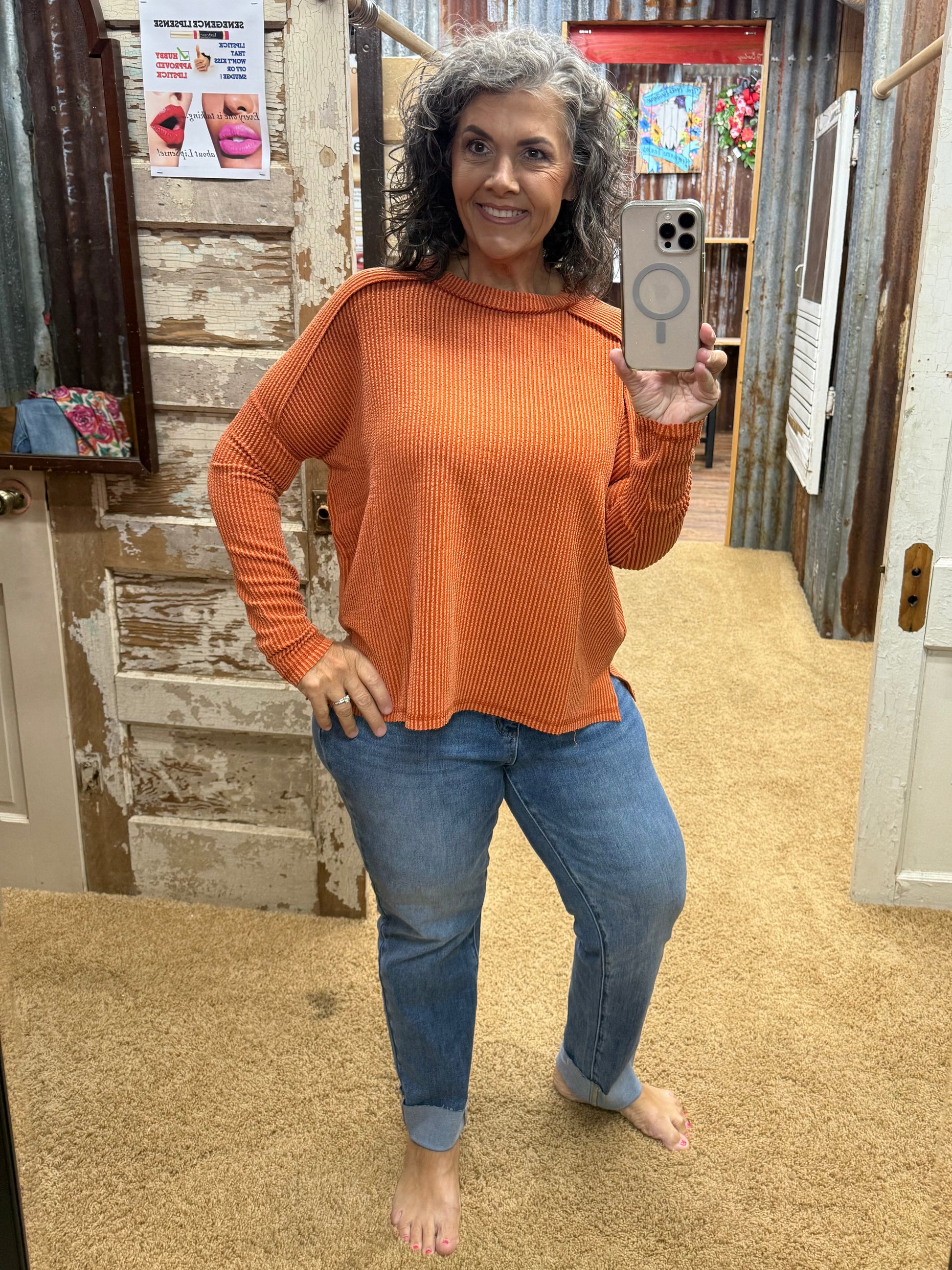 Burnt Orange Urban Ribbed Long Sleeve Top
