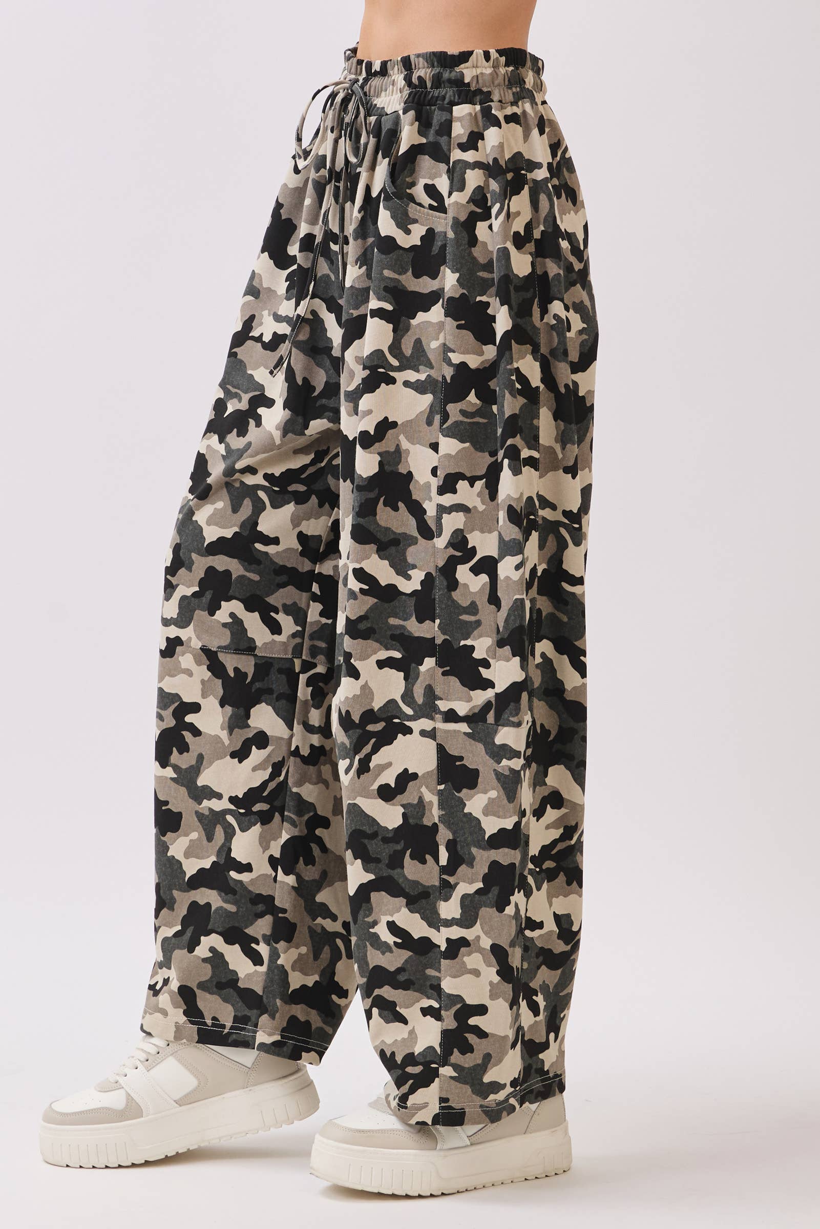 Stay comfy and standout in these Camo Terry Barrel Pants-designed with a soft terry knit and an on-trend barrel leg silhouette. Featuring a relaxed fit, drawstring waist, and bold camouflage print, these pants are perfect for casual days, lounging, or styling up for gameday looks. Pair them with a tucked tee or oversized sweatshirt for effortless streetwear style.camo barrel pants, terry camo pants, camouflage sweatpants, barrel leg joggers, gameday pants, relaxed fit camo, lounge pants camo, comfy streetwear, elastic waist pants, fall casual bottoms