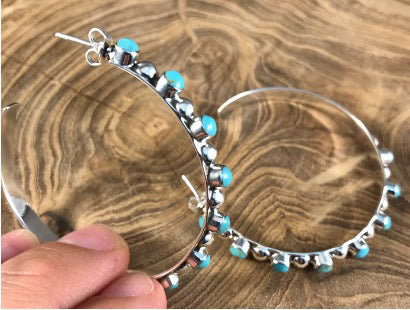 BOHO SOL Turquoise & Silver Hoops 925 Sterling Earrings
