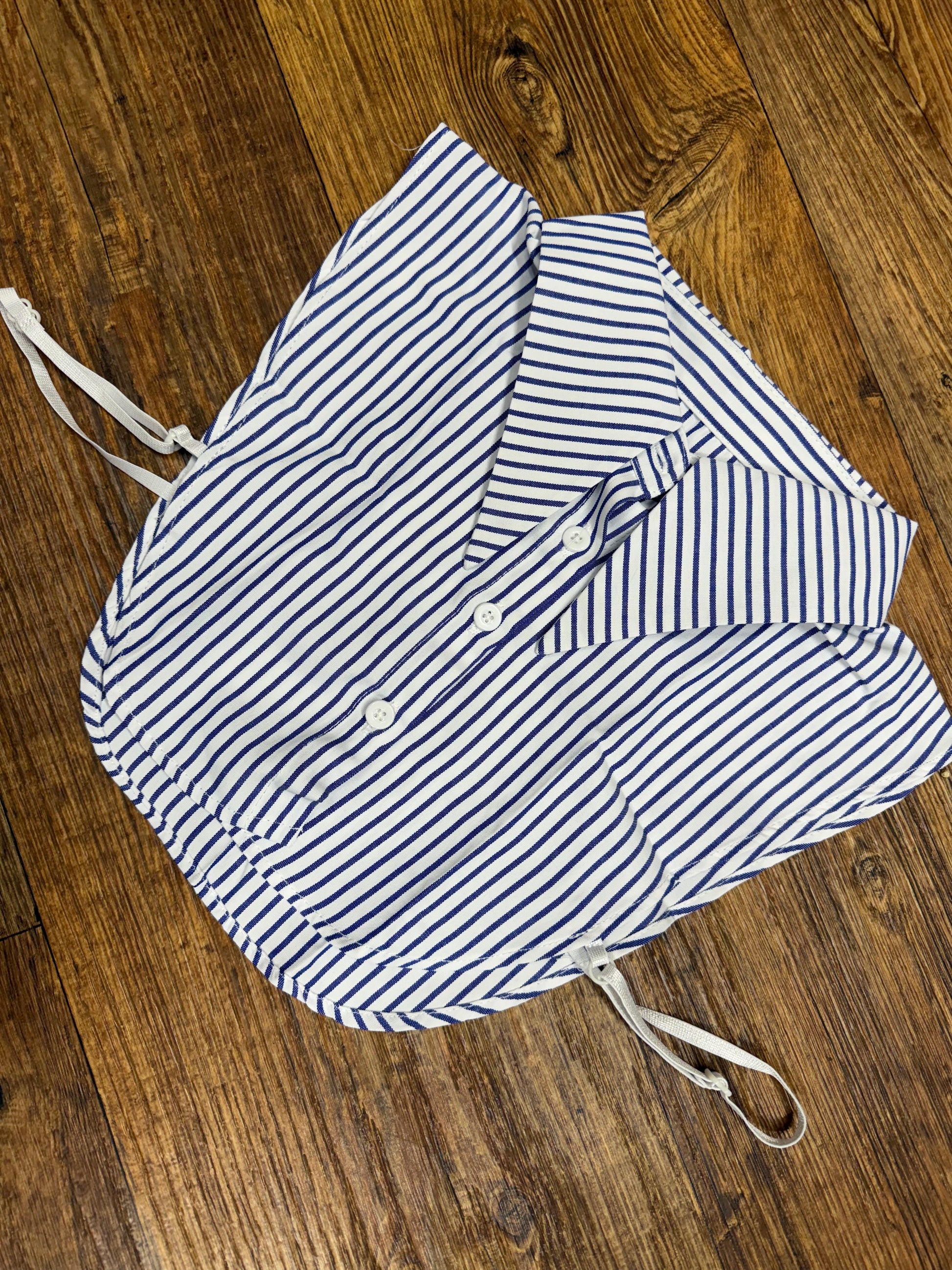 Make a statement with this bold blue and white striped collar that's ready to steal the show! The generous, oversized design stands tall above any sweater, sweatshirt, or tee, giving you instant personality and flair. Best part? One size adjusts to fit everyone, so you can share the style or keep it all for yourself. Layer it, style it, own it—this collar is your ticket to looking effortlessly put-together with a fun twist.