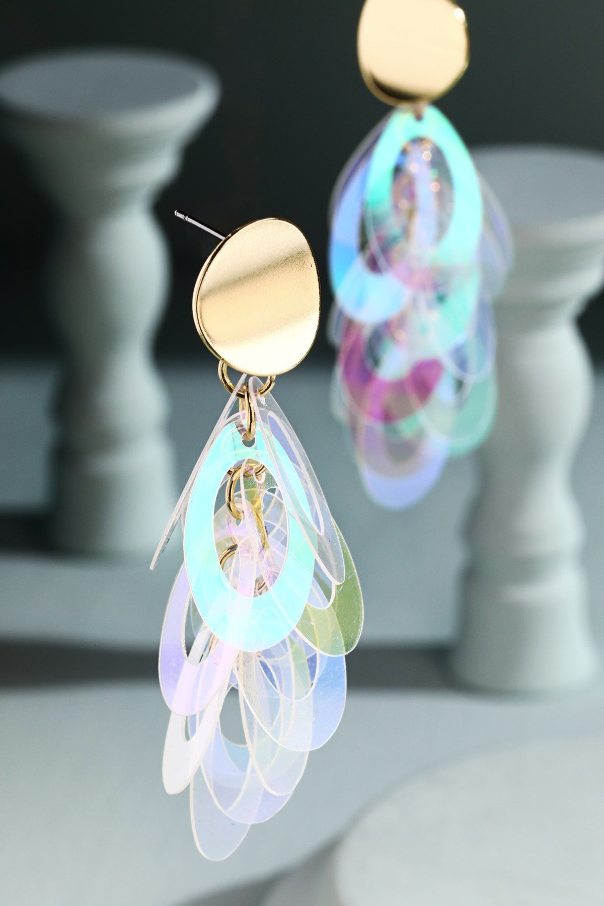 Crystal Layered Sequin Oval Dangle Earrings