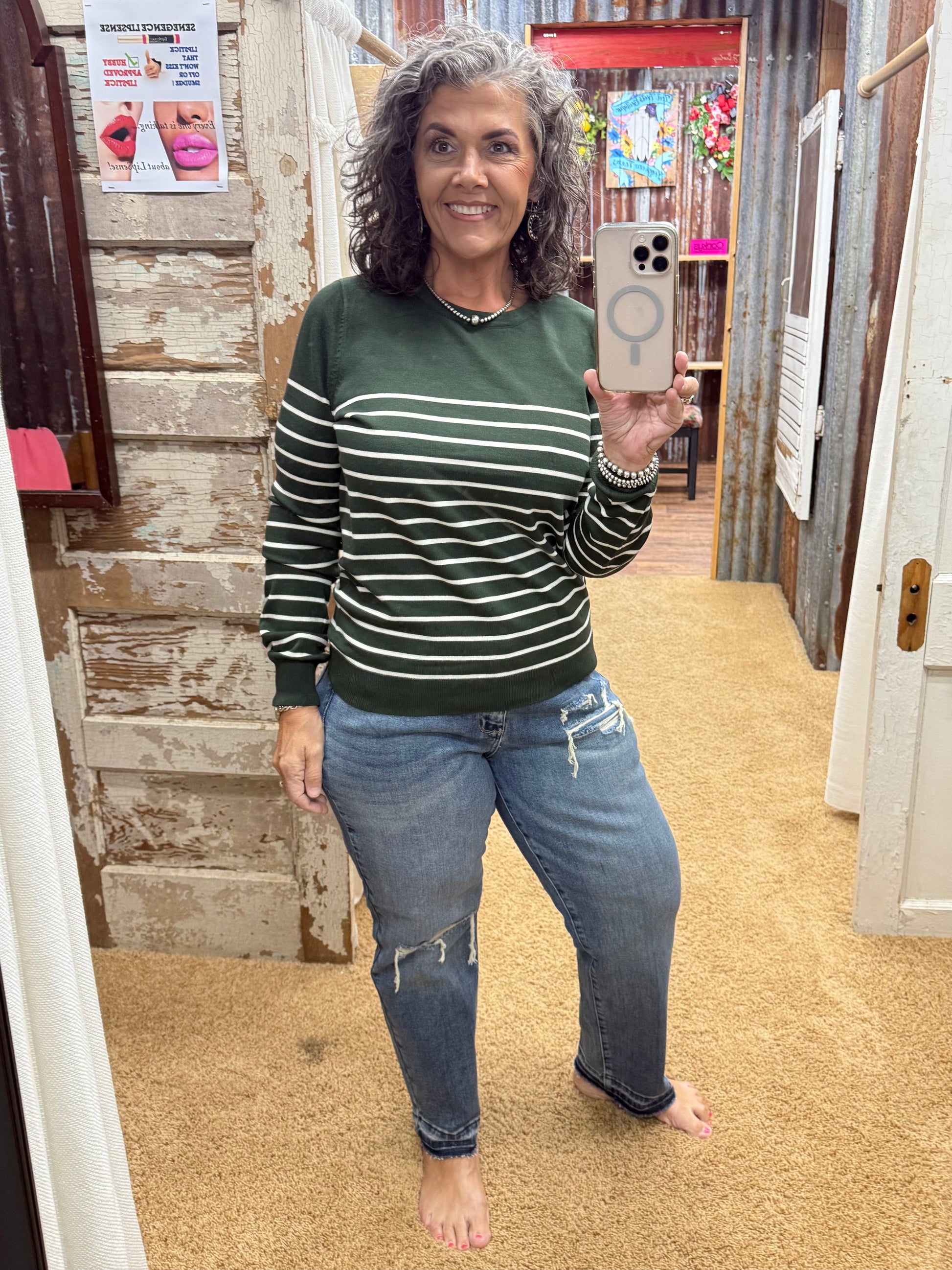 Make a bold statement with this Forest Sweater, featuring striking block stripes and a classic crew neck. Its long sleeves and pullover design offer both comfort and style, perfect for those who dare to stand out in any crowd.