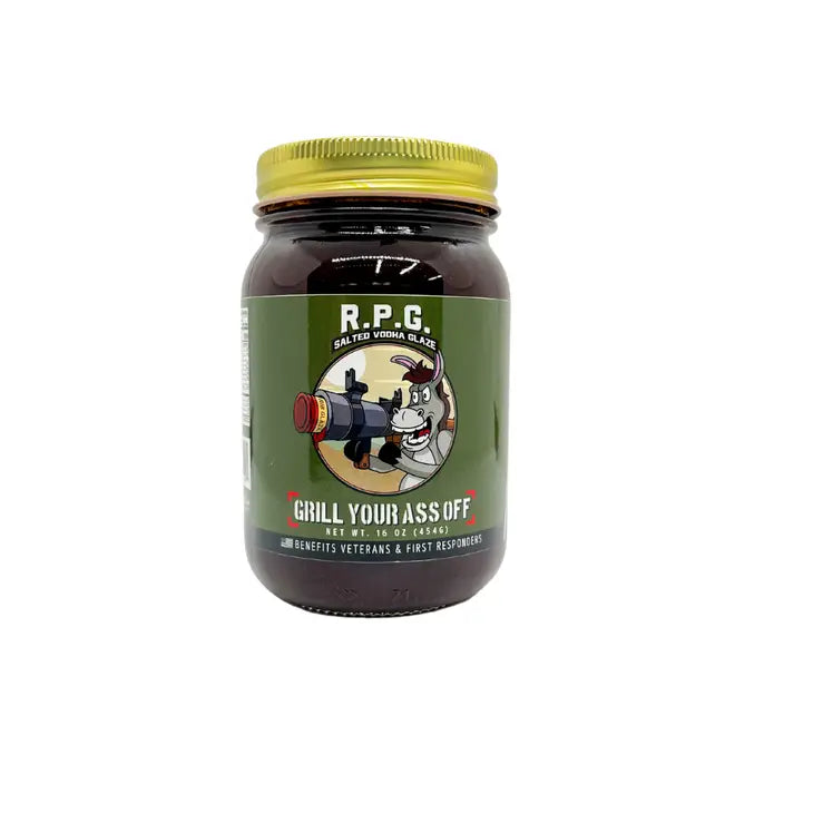 Blow the rib game away with our rpg (rib perfection glaze). The intoxicating taste of this tomato-based glaze with molasses, brown sugar, vodka, and other spices will annihilate the competition. So fire up the grill and remember, back blast area clear! Safety first! Veteran owned - american | texas made - small batch