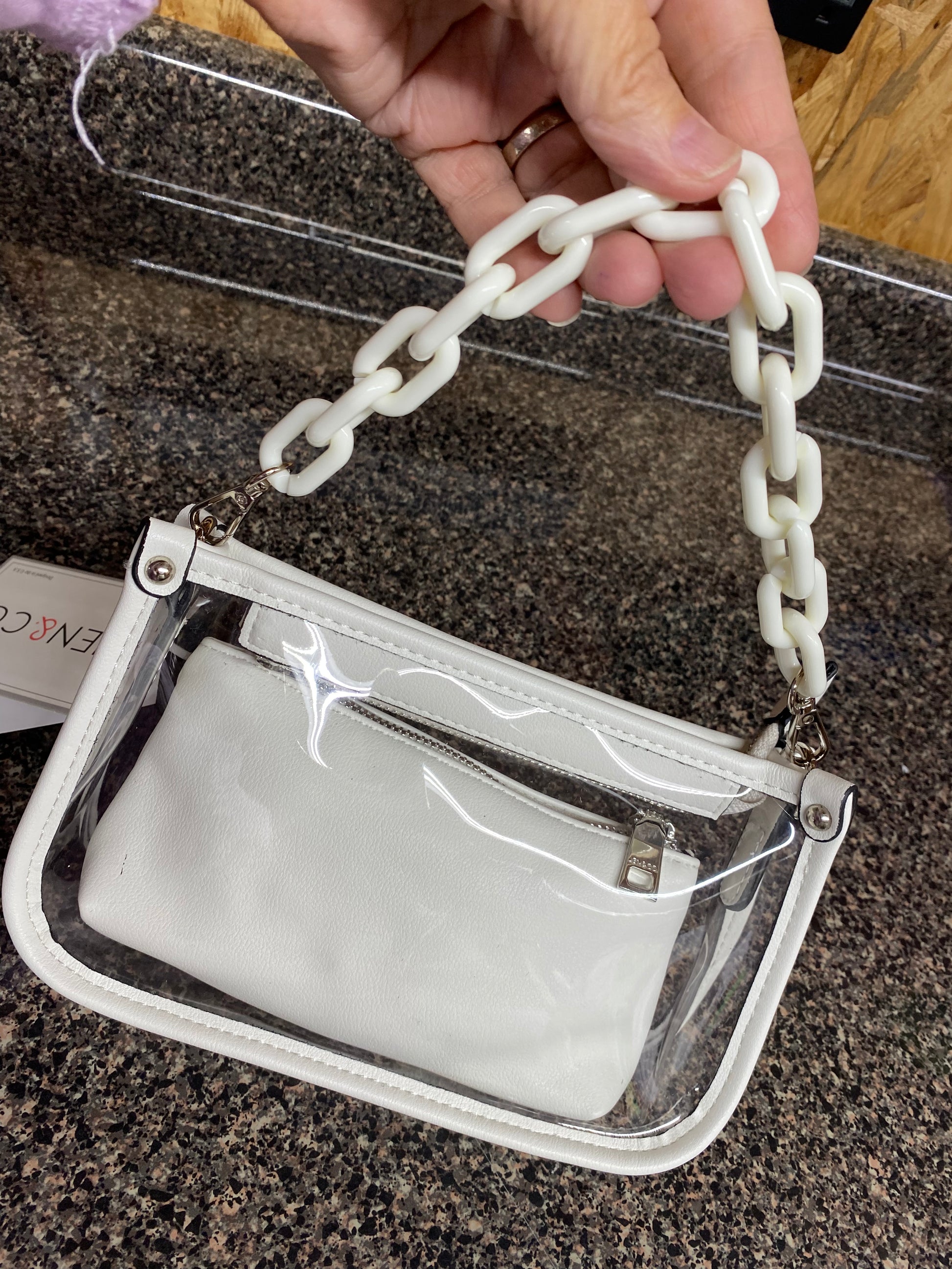 Jessica Clear White Stadium Crossbody w/ Chain