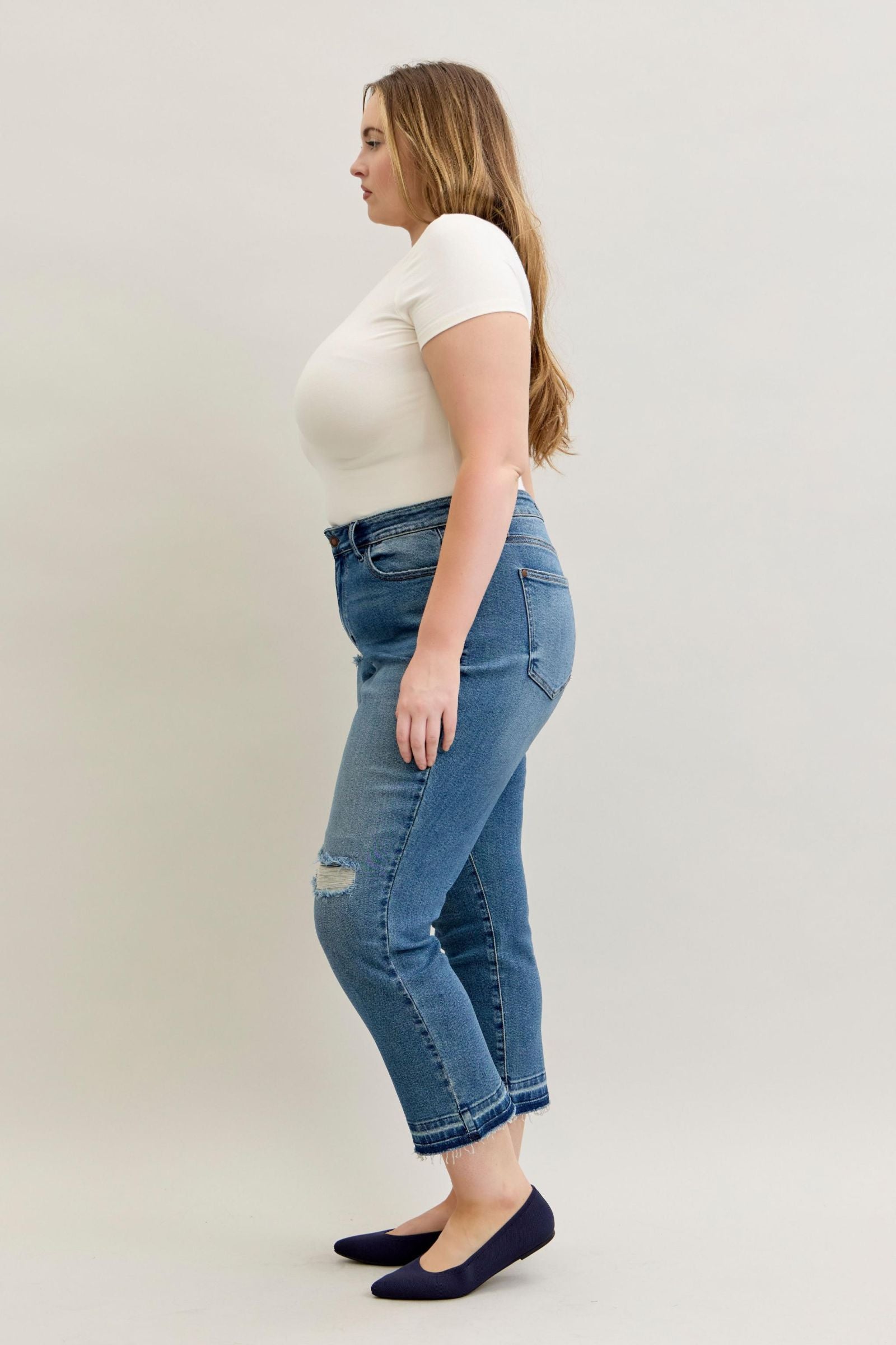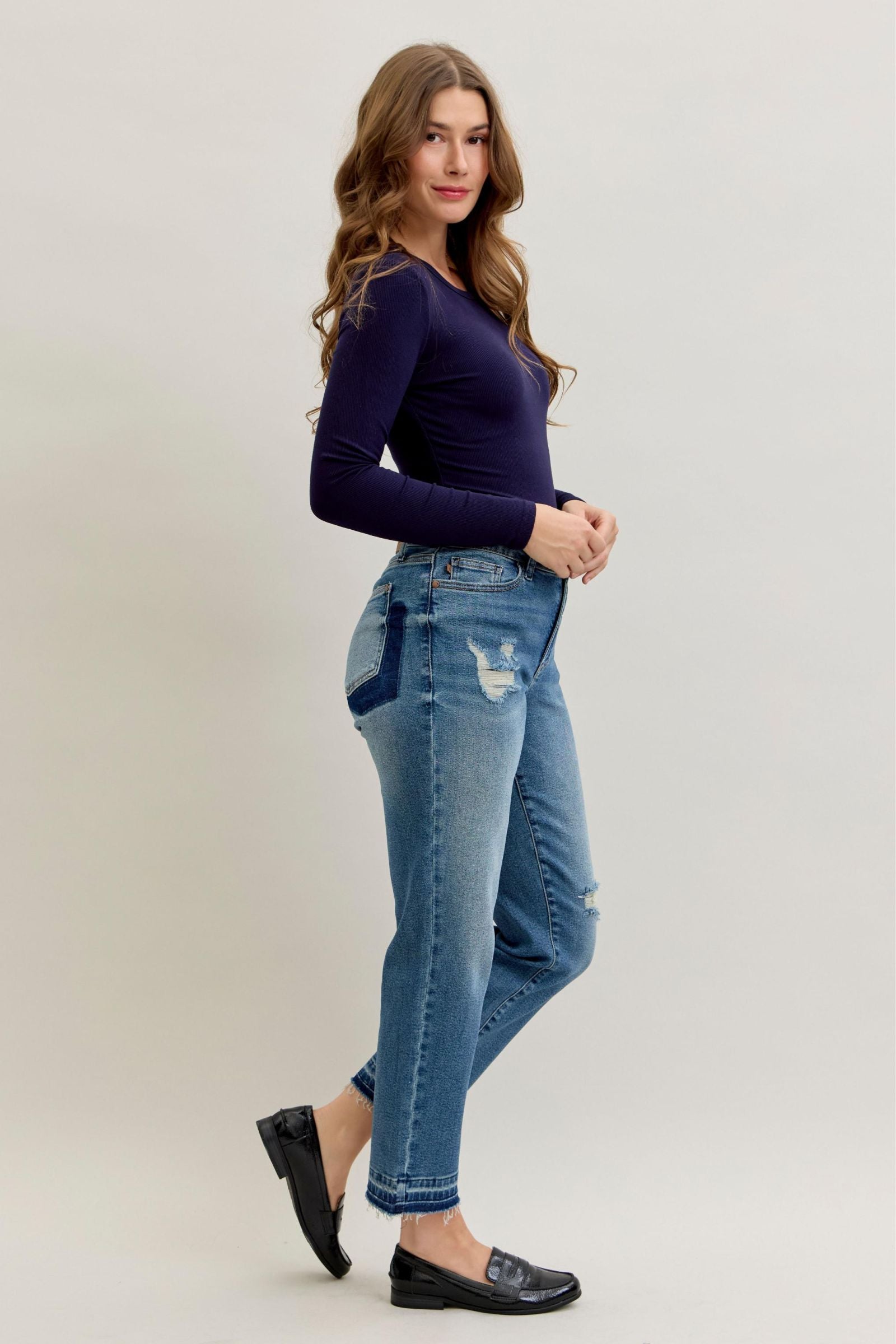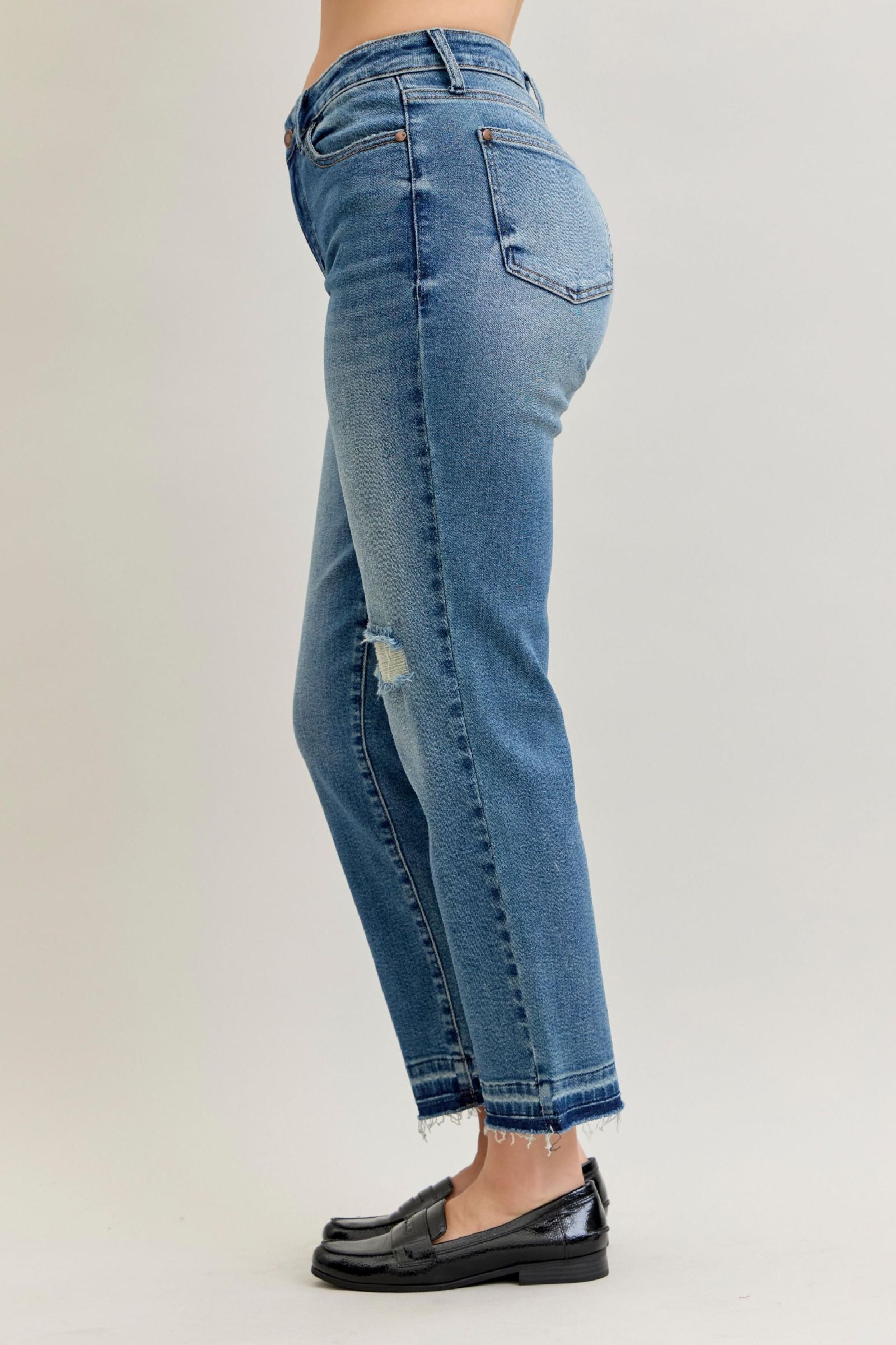 Judy Blue Mid Rise Patch & Repair Destroy Release Hem Jeans 881045