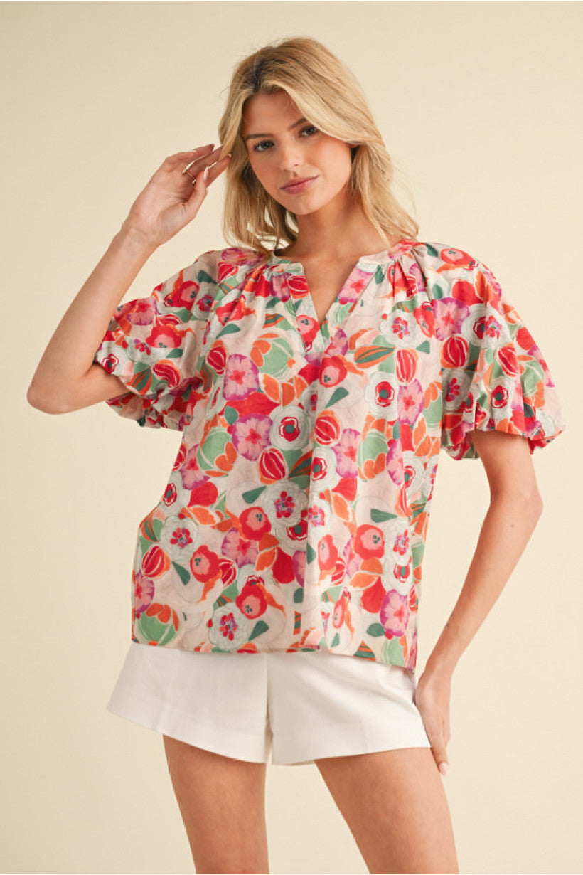 Bring some playful and flirty vibes to your wardrobe with our Malibu Blouse! This fabulous floral print top features a unique slit neck and stylish raglan short balloon sleeves. Plus, with wrinkle-free fabric, you'll always look effortlessly put together. (Wrinkles, who?) Get ready to turn heads in this must-have wardrobe staple.