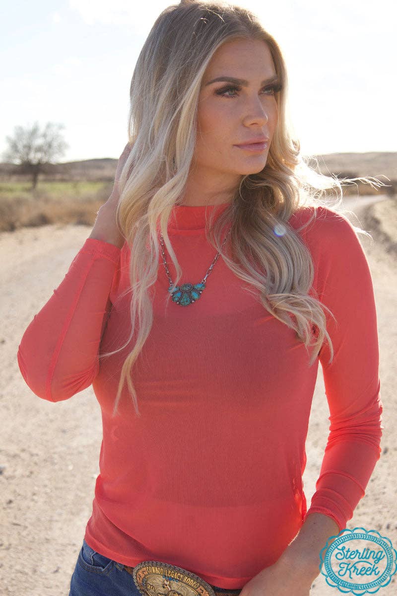 Introducing the Meshed Out Coral top, a playful twist on a solid coral top. Made from breathable mesh material, this top will keep you cool and stylish all day long. Perfect for any occasion, pair it with your favorite jeans or skirt for a fun and unique look.