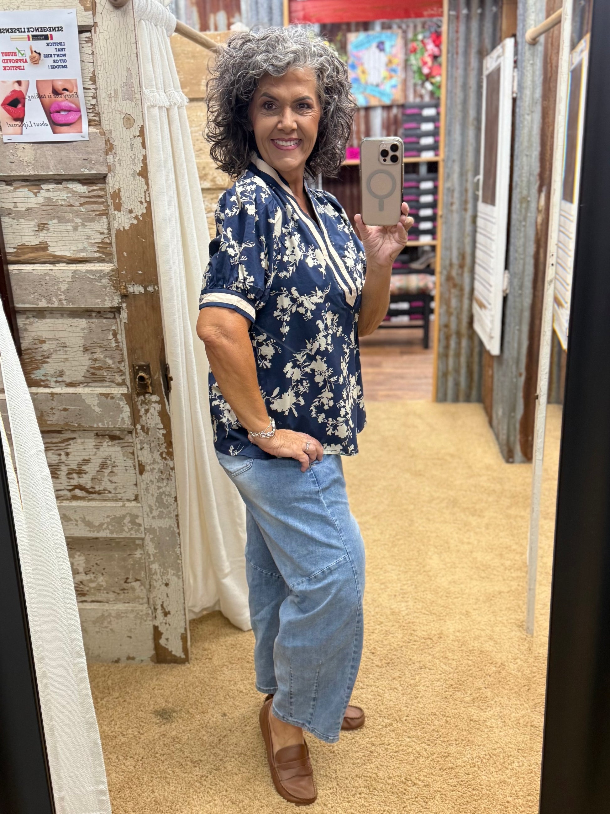 Brighten your day with the Midnight Blue Blouse by Entro! This playful top features a charming floral print and short puff sleeves that add a fun, flirty touch. The multicolor accent V-neck band collar brings a pop of color, while the lightweight, woven fabric keeps you comfortable and cool. Unlined and non-sheer, it’s perfect for layering or wearing on its own for effortless style.