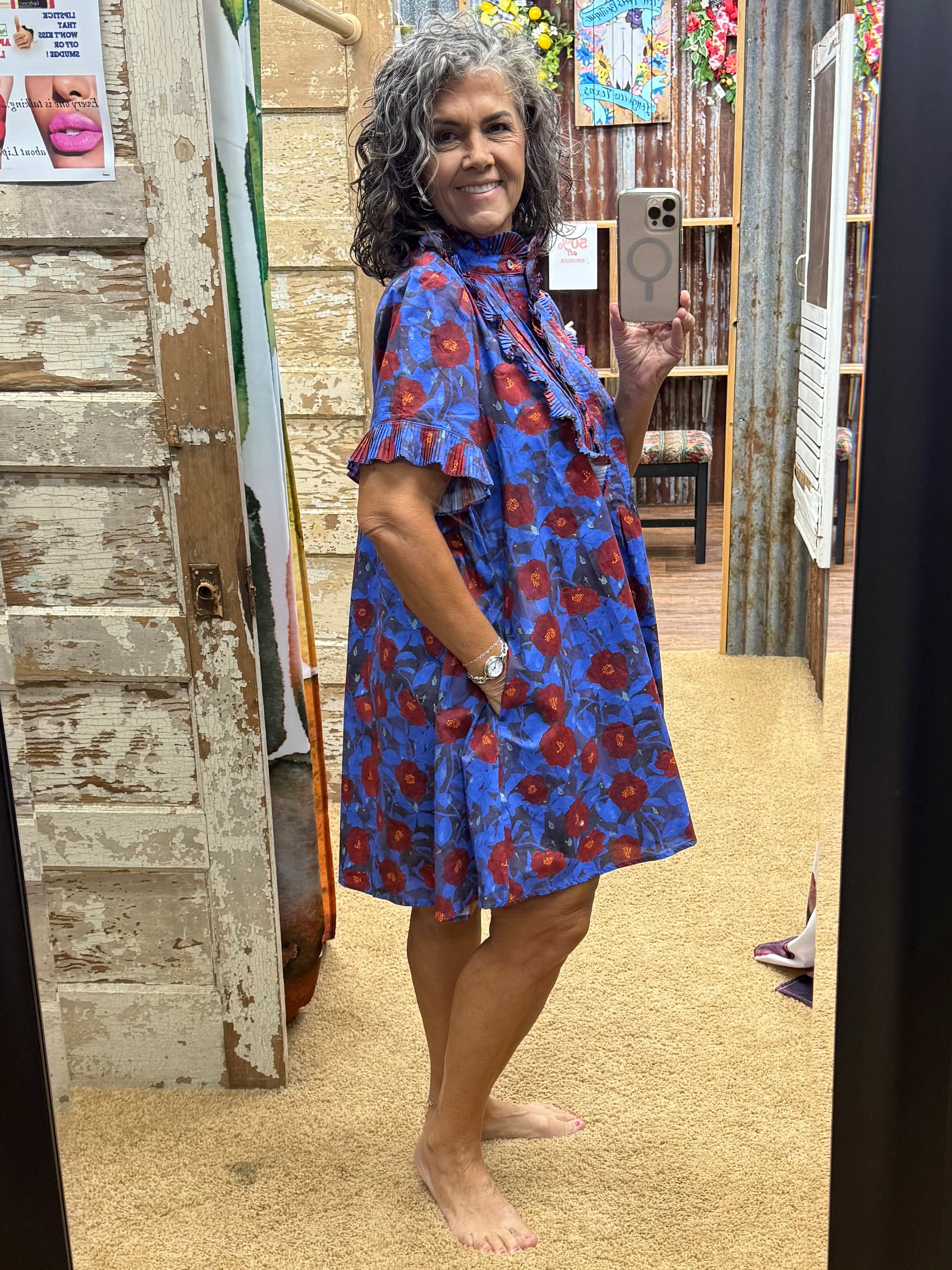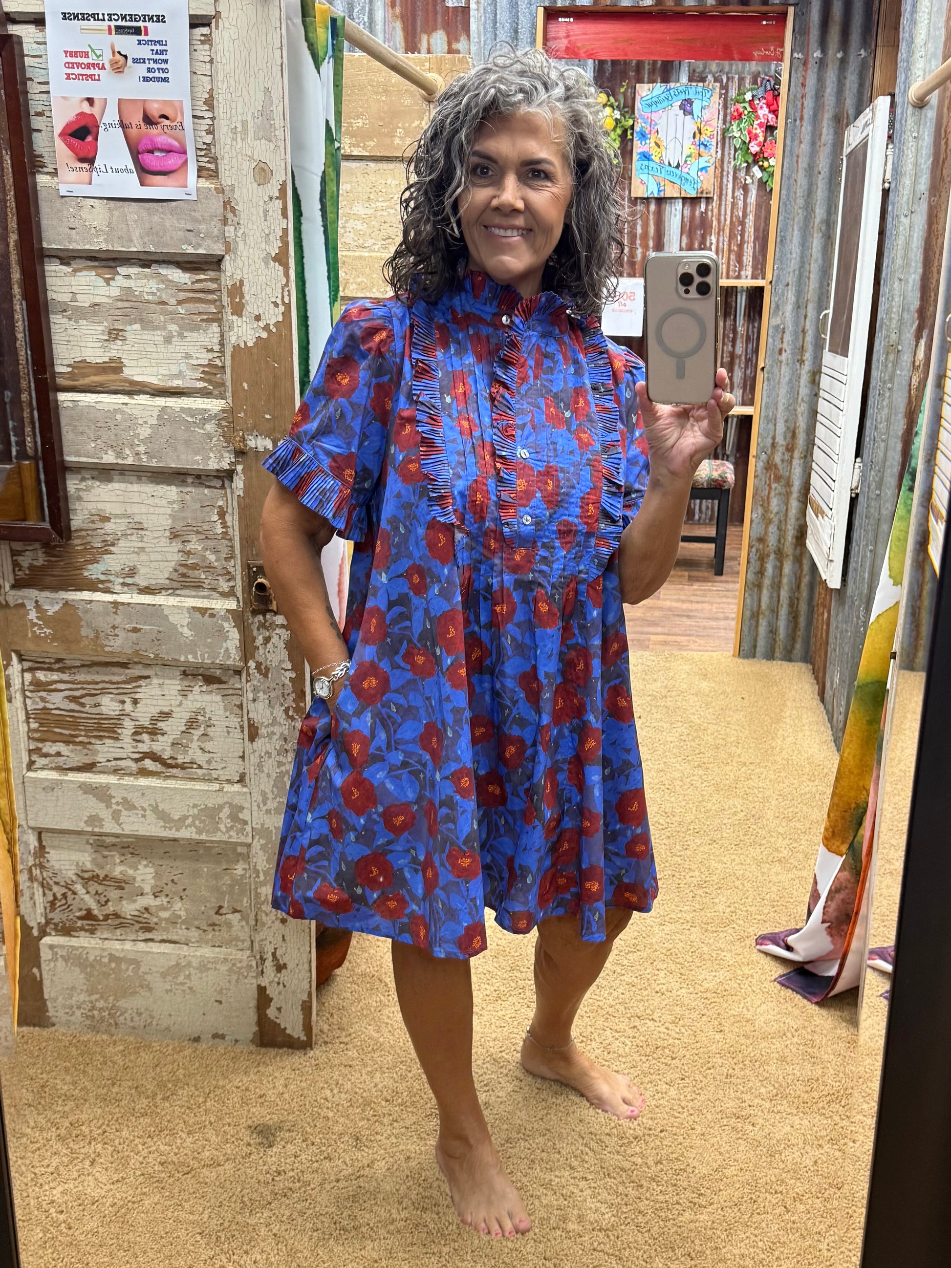 Twirl into the night with our Midnight Blue Dress! This floral print mini features charming pintuck details and playful ruffle accents that dance with every step. The convenient side pockets add practicality to prettiness, while the lightweight woven fabric keeps you comfortable. Fully lined for worry-free wear – it's the perfect blend of fun and flirty fashion!