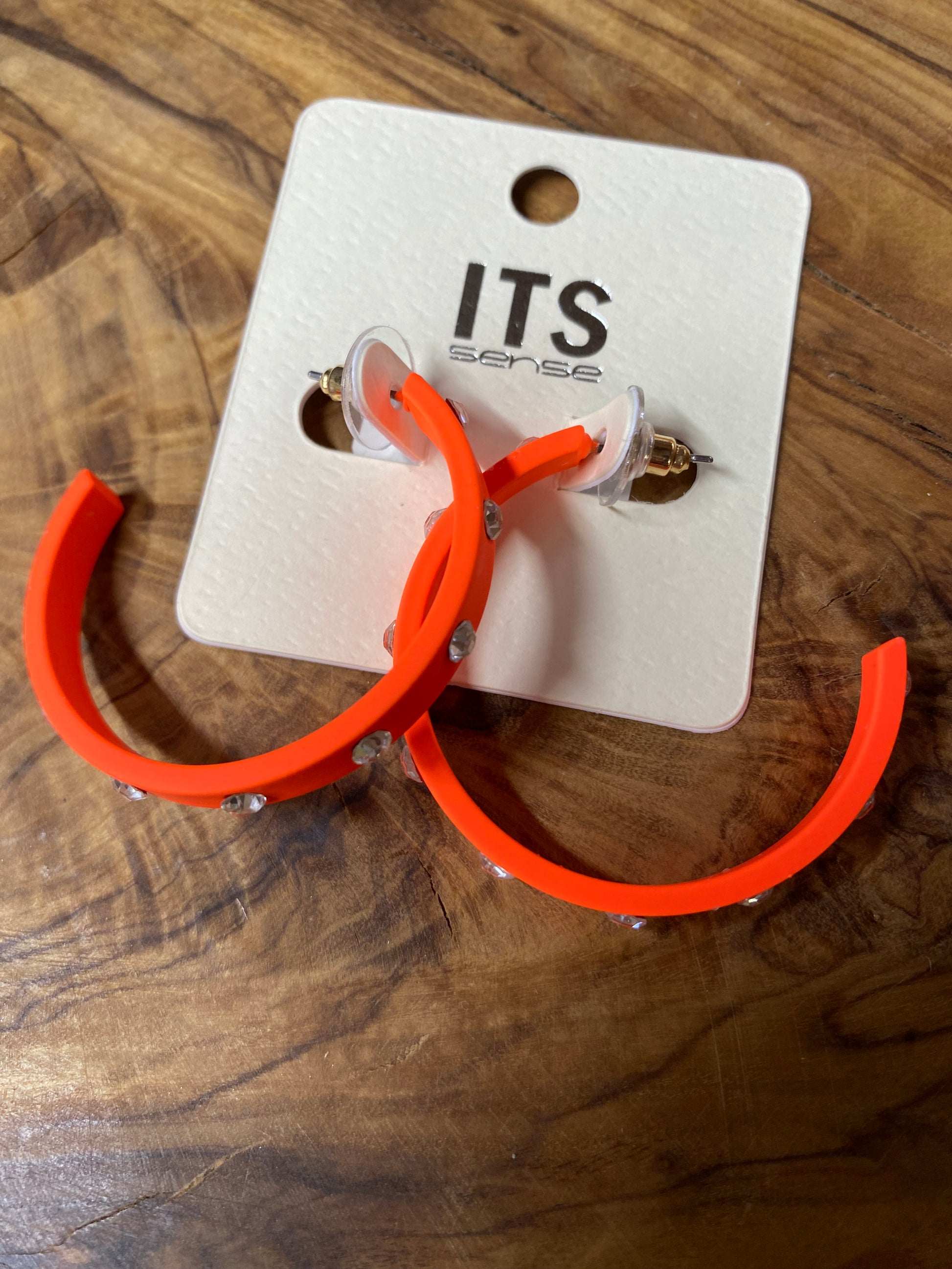 Neon Orange Blingy Hoop Earrings