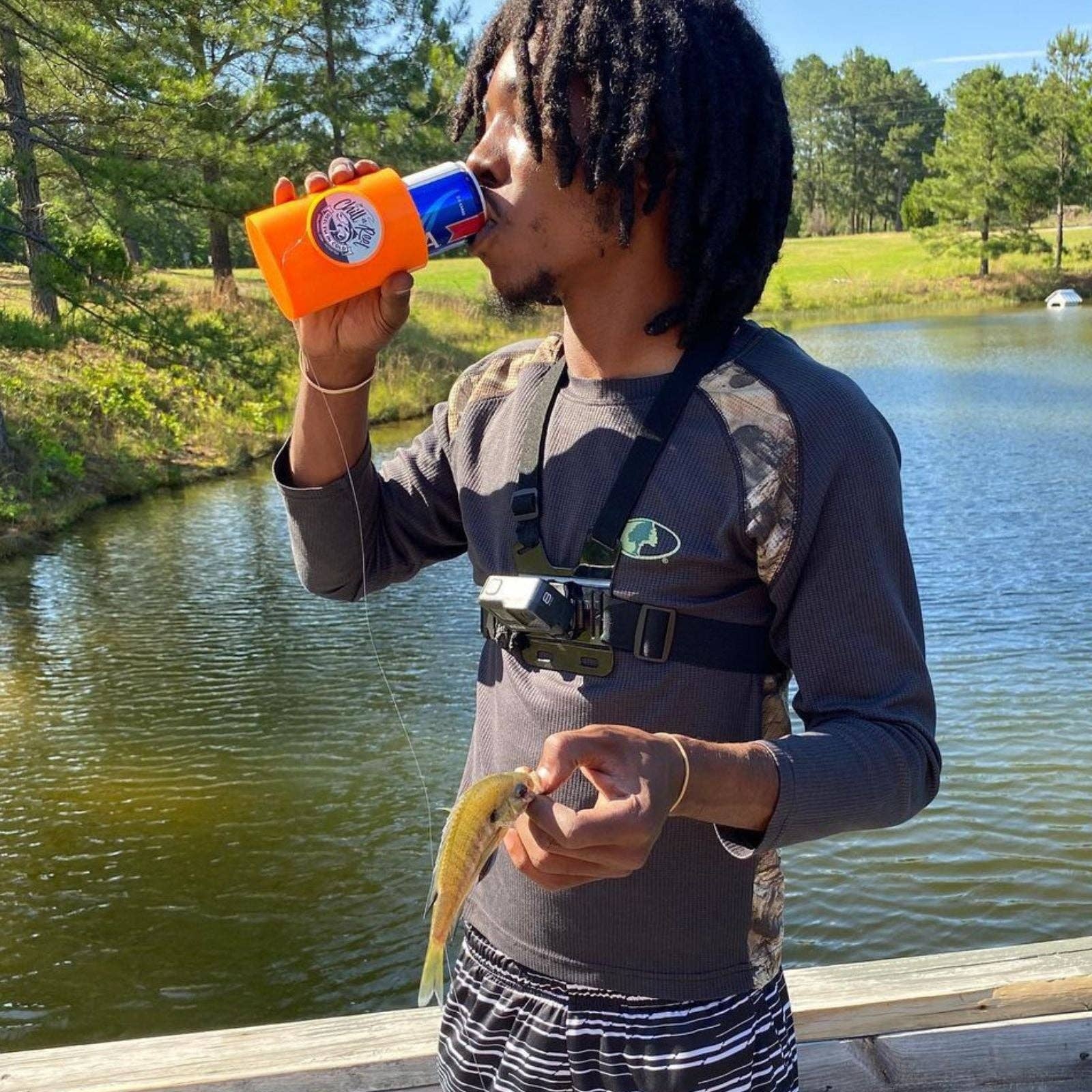 As seen on Shark Tank, Chill-N-Reel is the patented, 🇺🇸 Made in USA fishing can cooler that turns any drink into a head-turning, good-times gadget. Invented by a firefighter who wanted to hold his beer and reel in fish at the same time, Chill-N-Reel ships ready to use with: - Patented Chill-N-Reel outer shell - Foam coolie insert - Fishing line (50 feet of 8 lb test, pre-wound on the spool) - Starter hook and sinker - Instruction card - Spill Guard that snaps onto standard and slim cans to limit sloshing Highly giftable, durable, easy to use, and perfect for tailgates, boat days, and camping.
