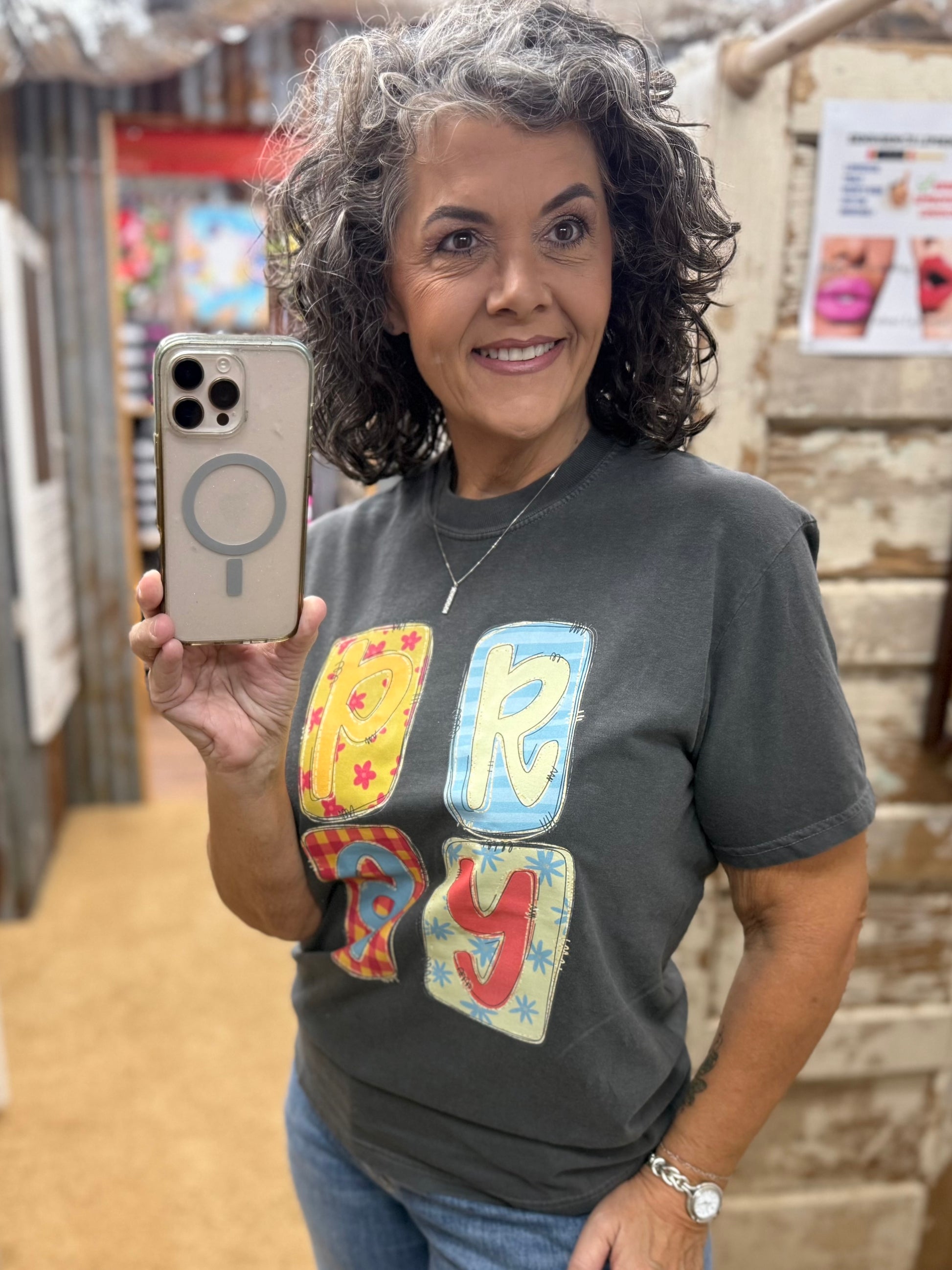 This Pepper Grey Power of Prayer Tee adds a little pep to your day with its soft, comfy feel and playful vibe. Perfect for spreading good energy and keeping things light, it’s the go-to shirt for casual days full of positive vibes.