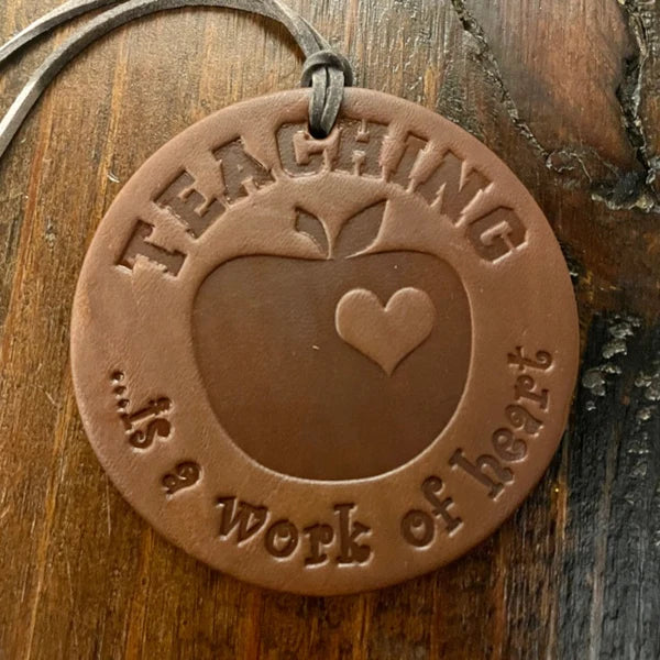 Round Teacher Car Freshie Vanilla Leather Red in Color