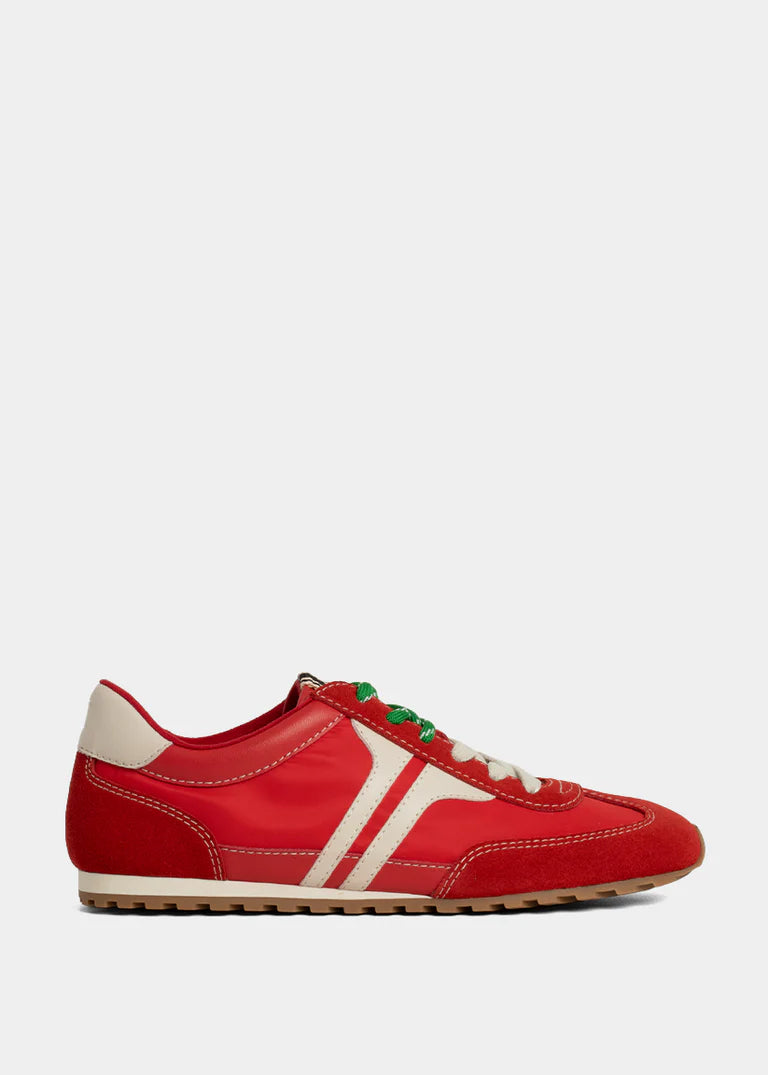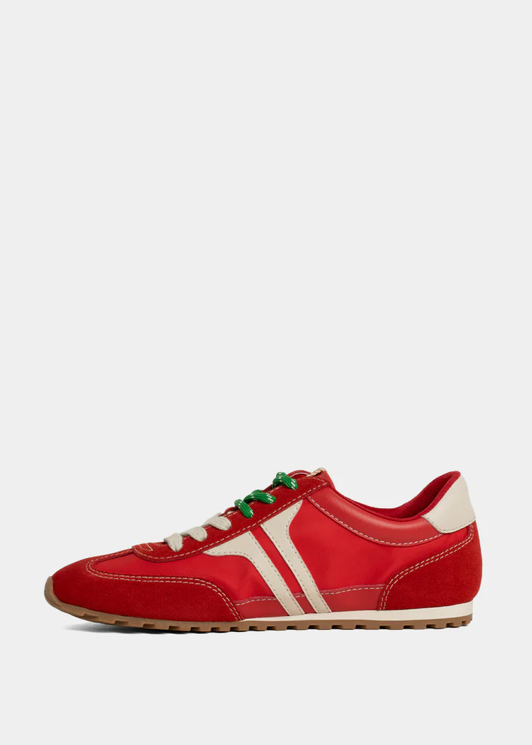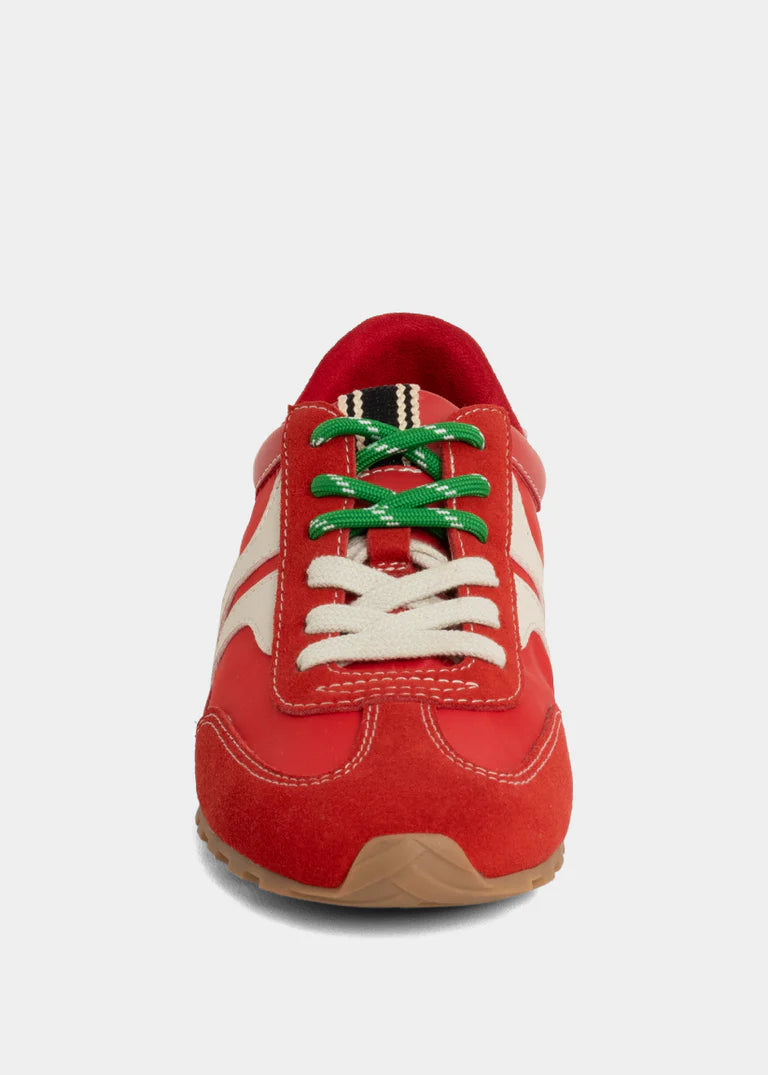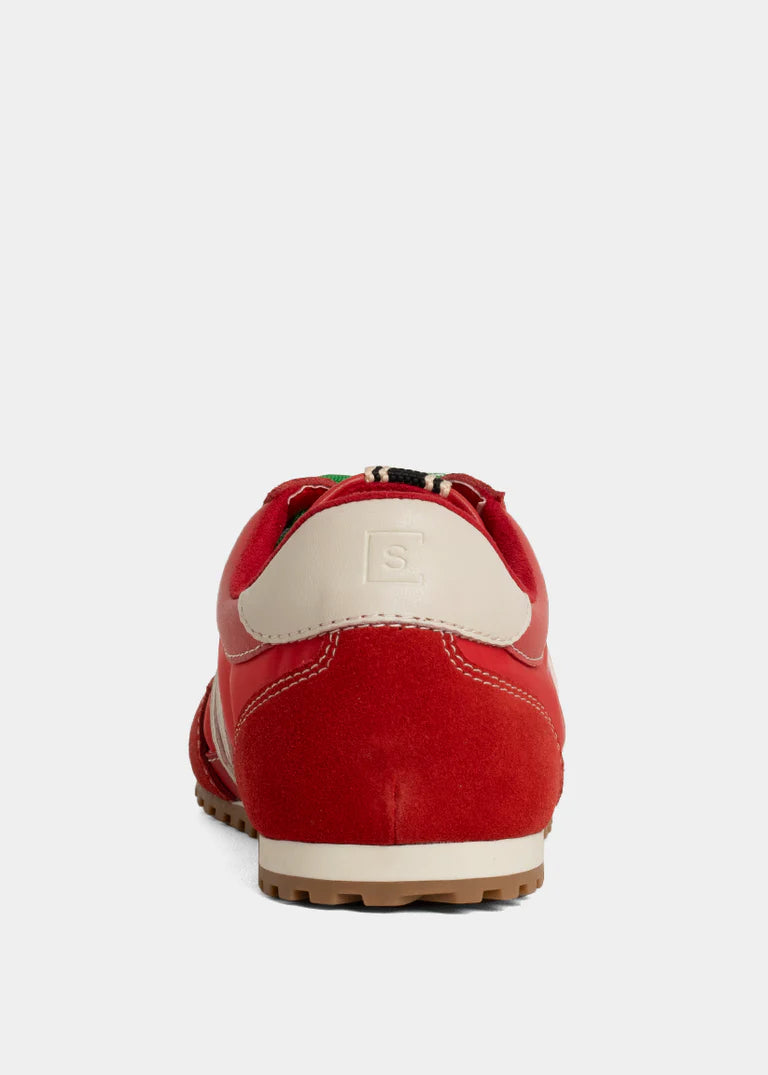 Meet your new statement sneaker. The SARAH in Red brings retro-sporty energy to life with its bold crimson upper and classic contrast detailing. The gum sole adds vintage flair, while the sleek silhouette keeps it effortlessly modern. Whether you're off-duty or dressing it up with a tailored look, this pair adds confidence to every step.