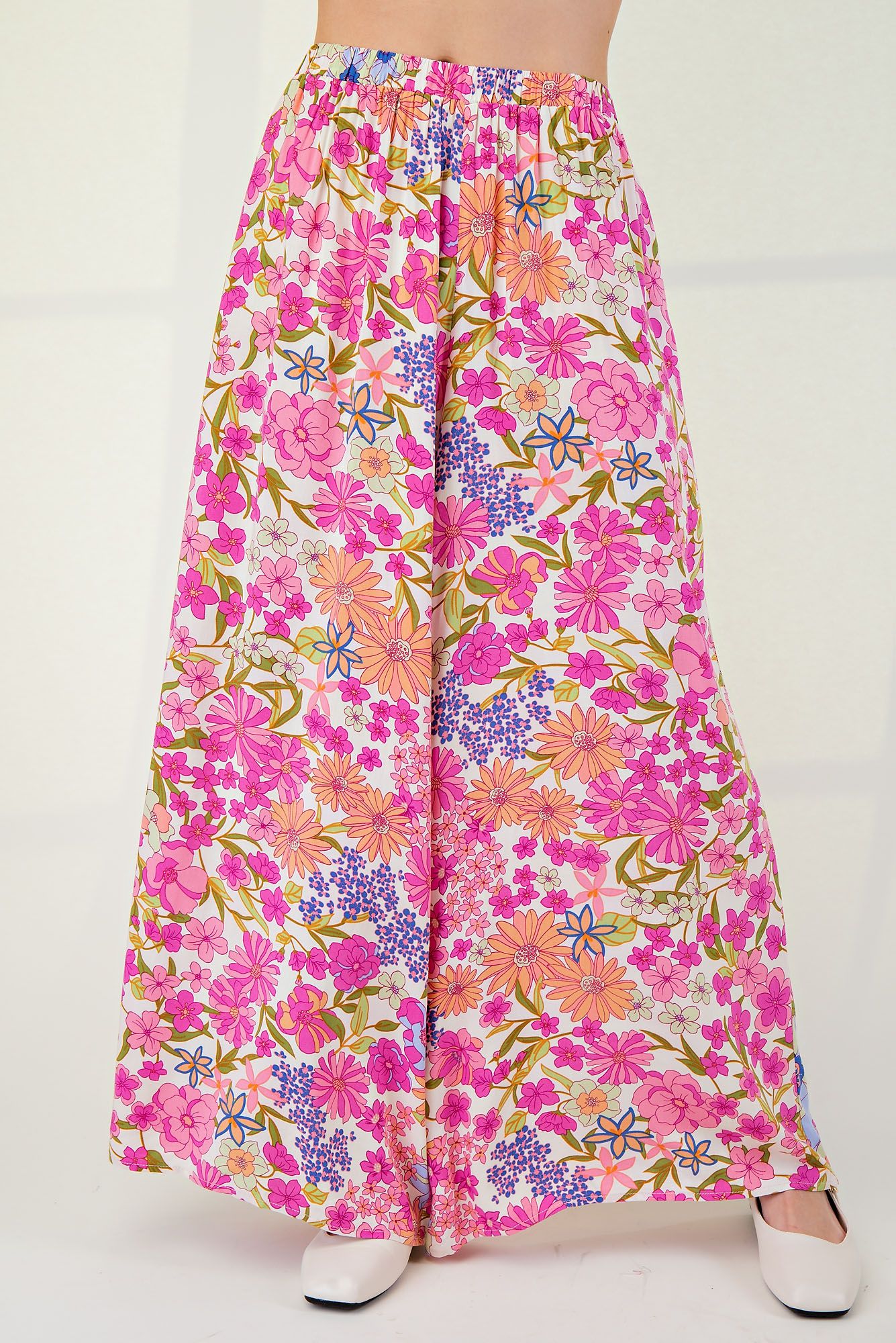 Get ready to blossom in our Springtime Pink Challis Palazzo Pants! These floral print pants feature a relaxed and loose fit for ultimate comfort, while the lightweight and flowy fabric will keep you cool on warm days. Plus, the wide leg silhouette and convenient side pockets add a touch of practicality. Pair them with our Springtime Peace Shirt for the perfect spring outfit.