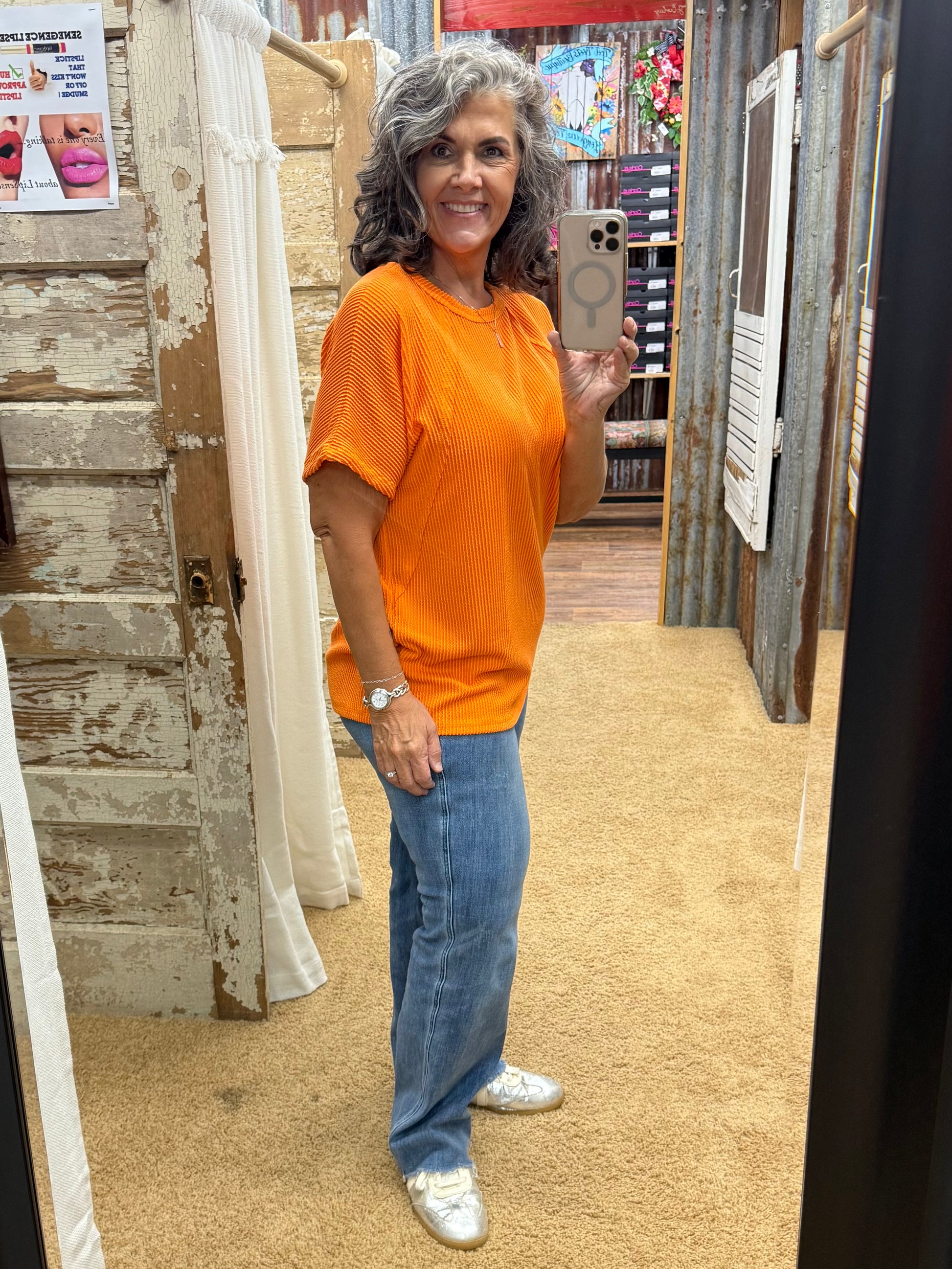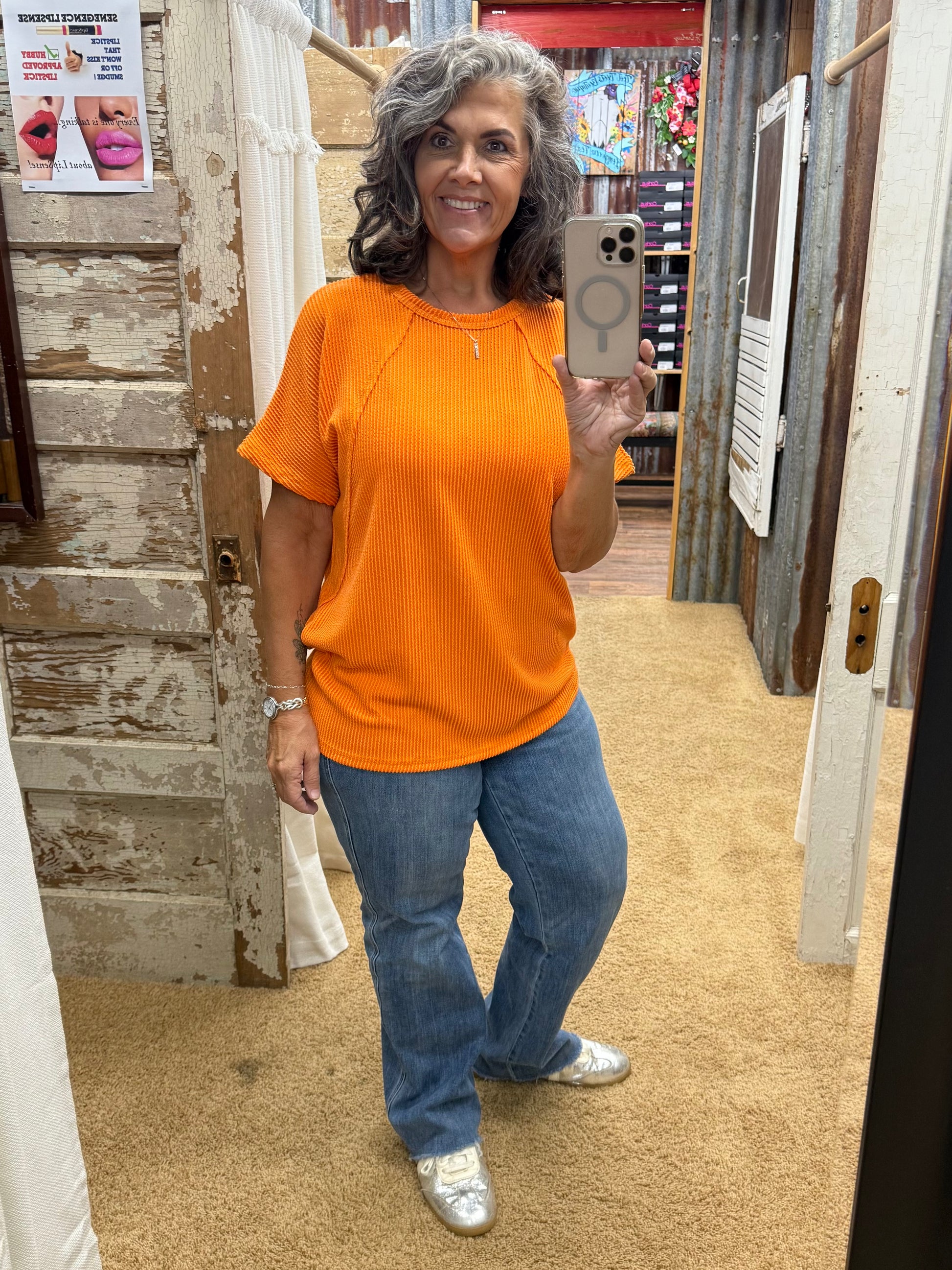 ORANGE SHORT SLEEVE SOLID URBAN RIBBED TOP