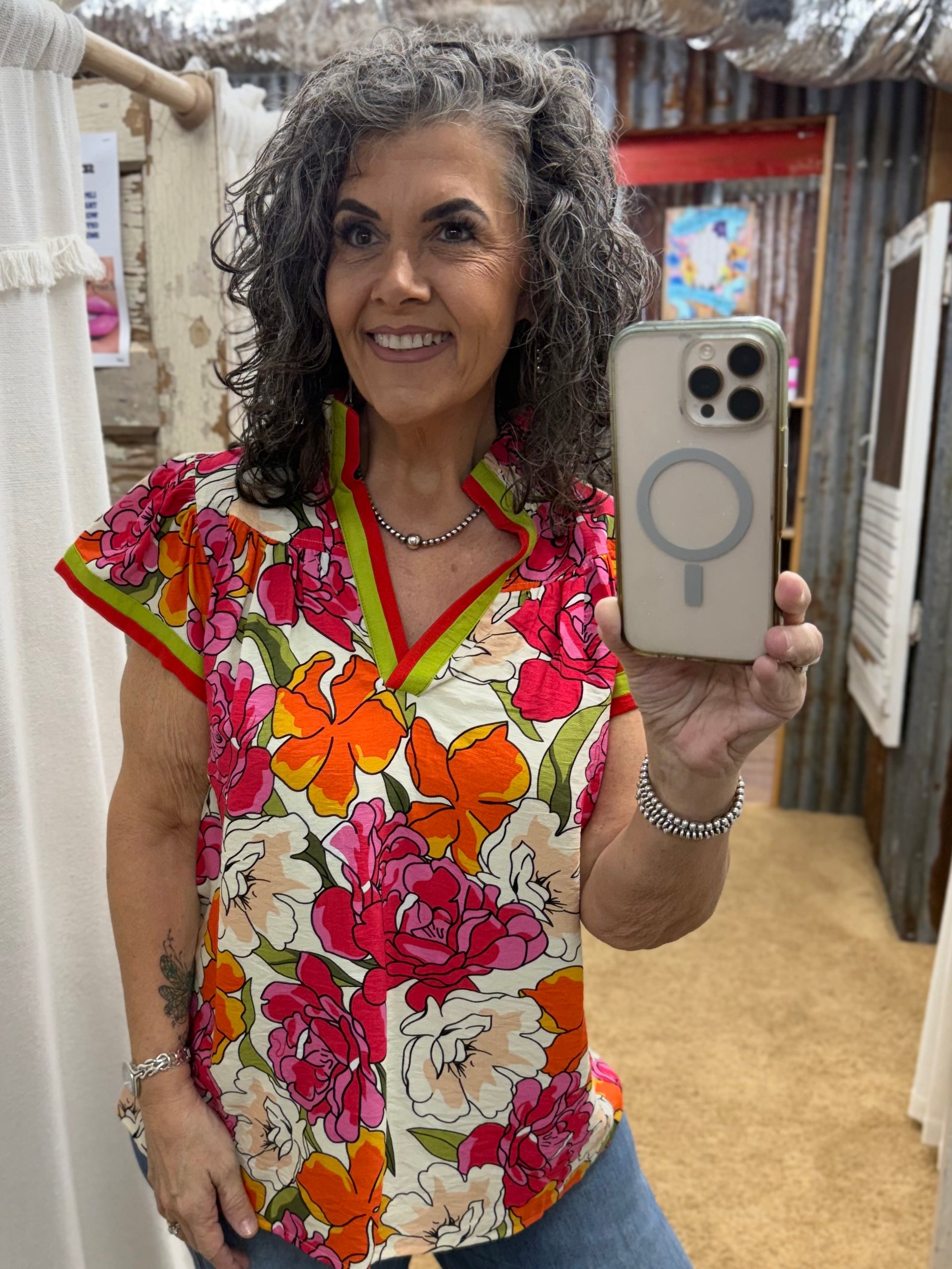 Floral Print Blouse with Contrast Trim