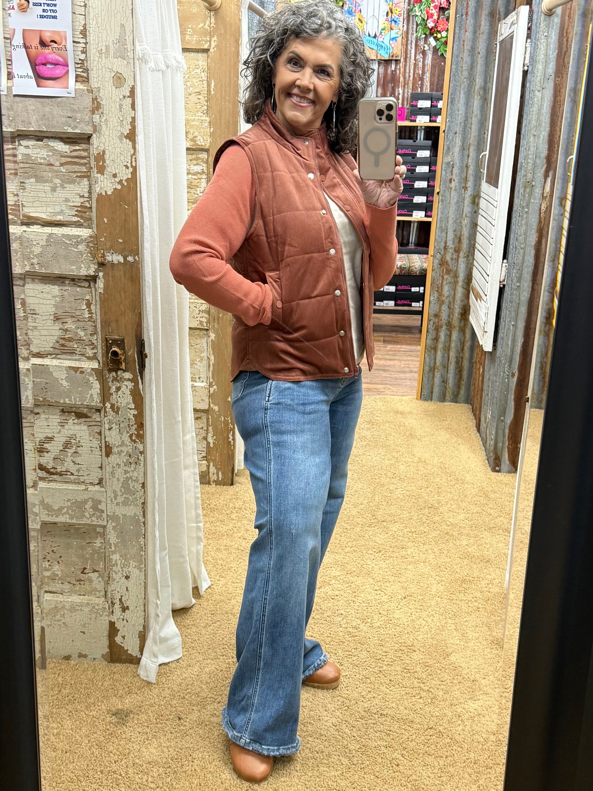 TERRACOTTA MINI CORDUROY PUFFER VEST WITH POCKETS