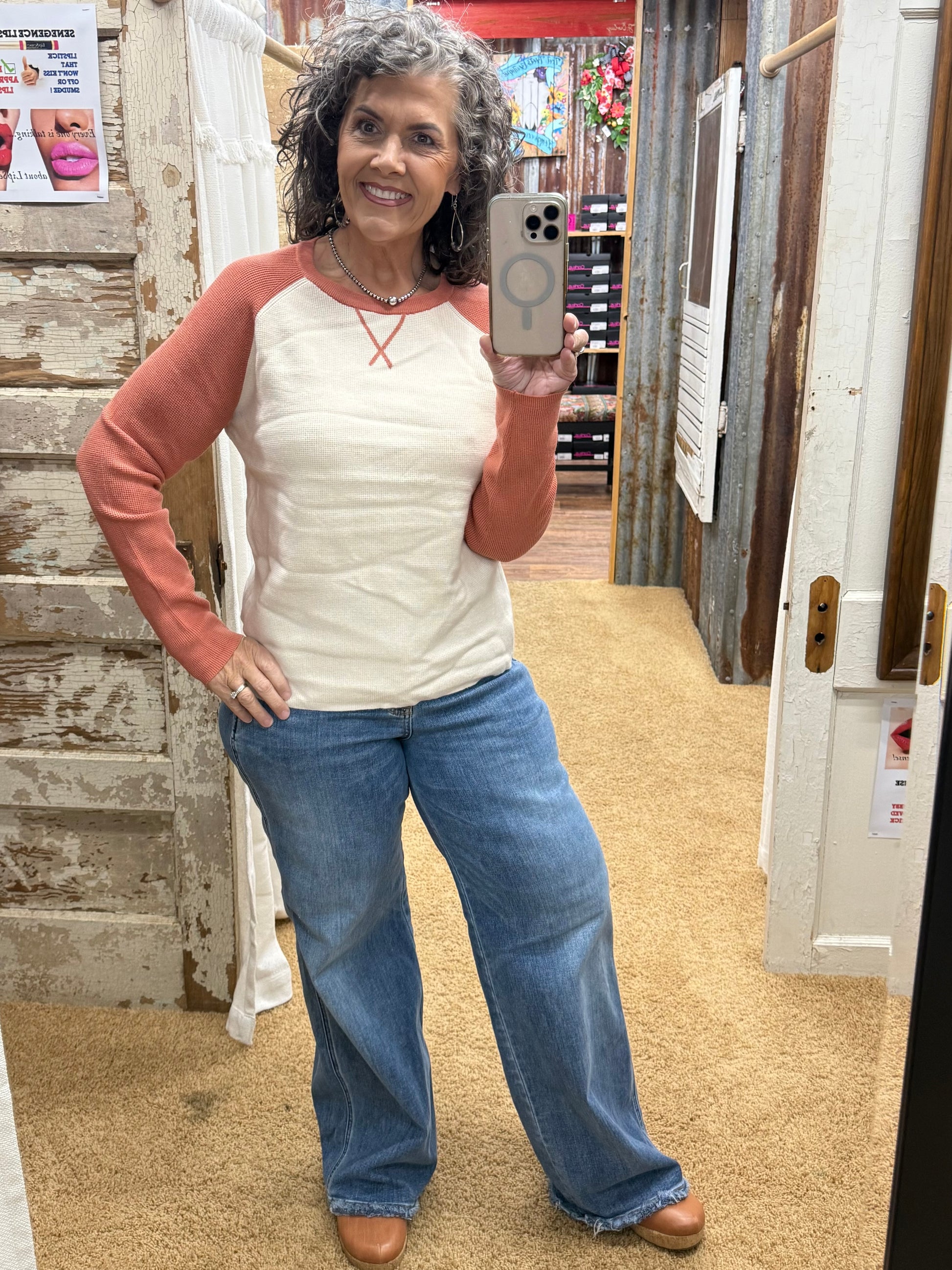 This terracotta sweater features a classic crew neck and long sleeves, designed with a modern color-blocked pattern. Crafted from waffle-textured fabric, it offers both warmth and subtle visual interest. The pullover style ensures easy wear, making it a versatile addition to your wardrobe for layering or standalone comfort.
