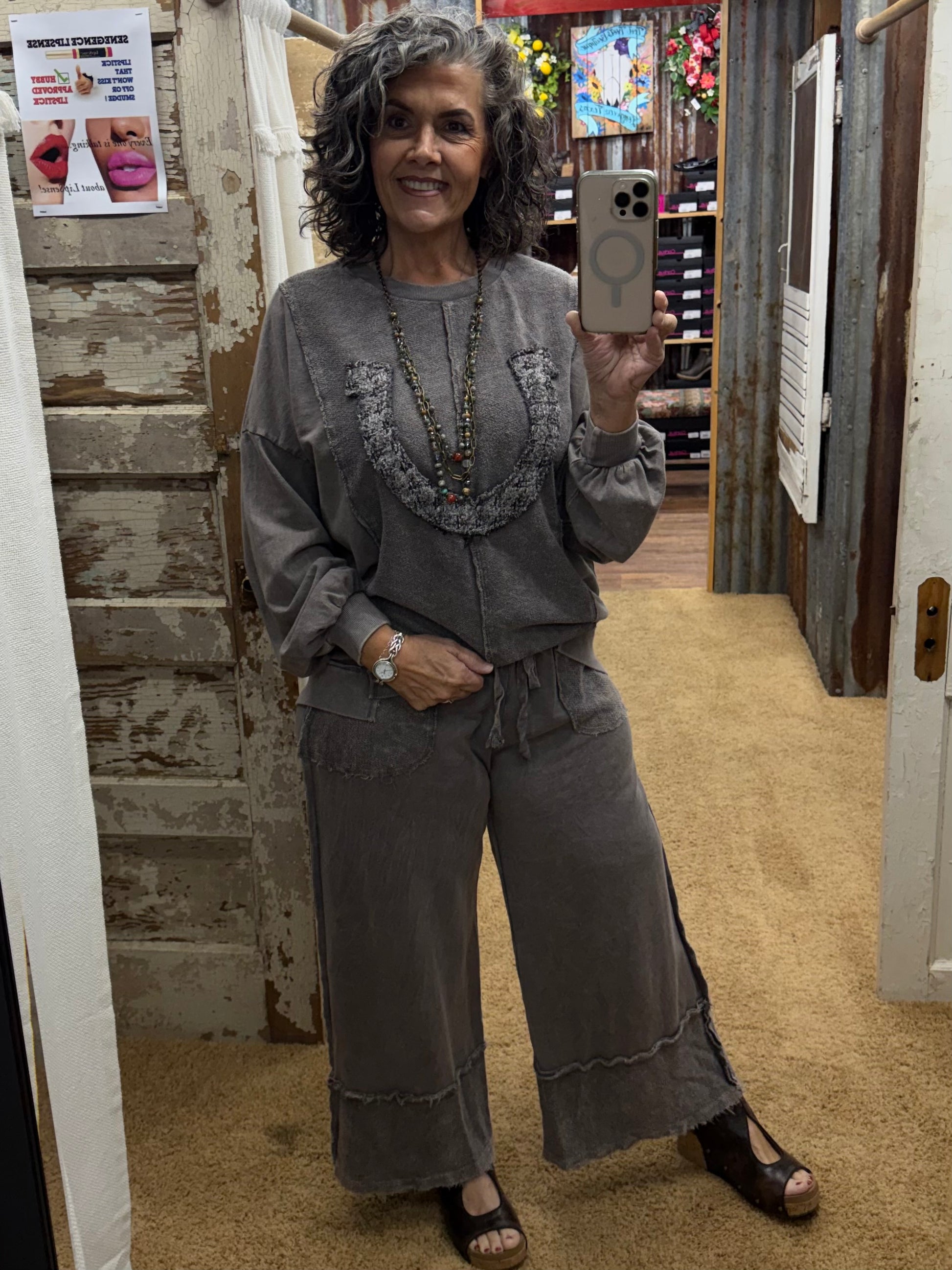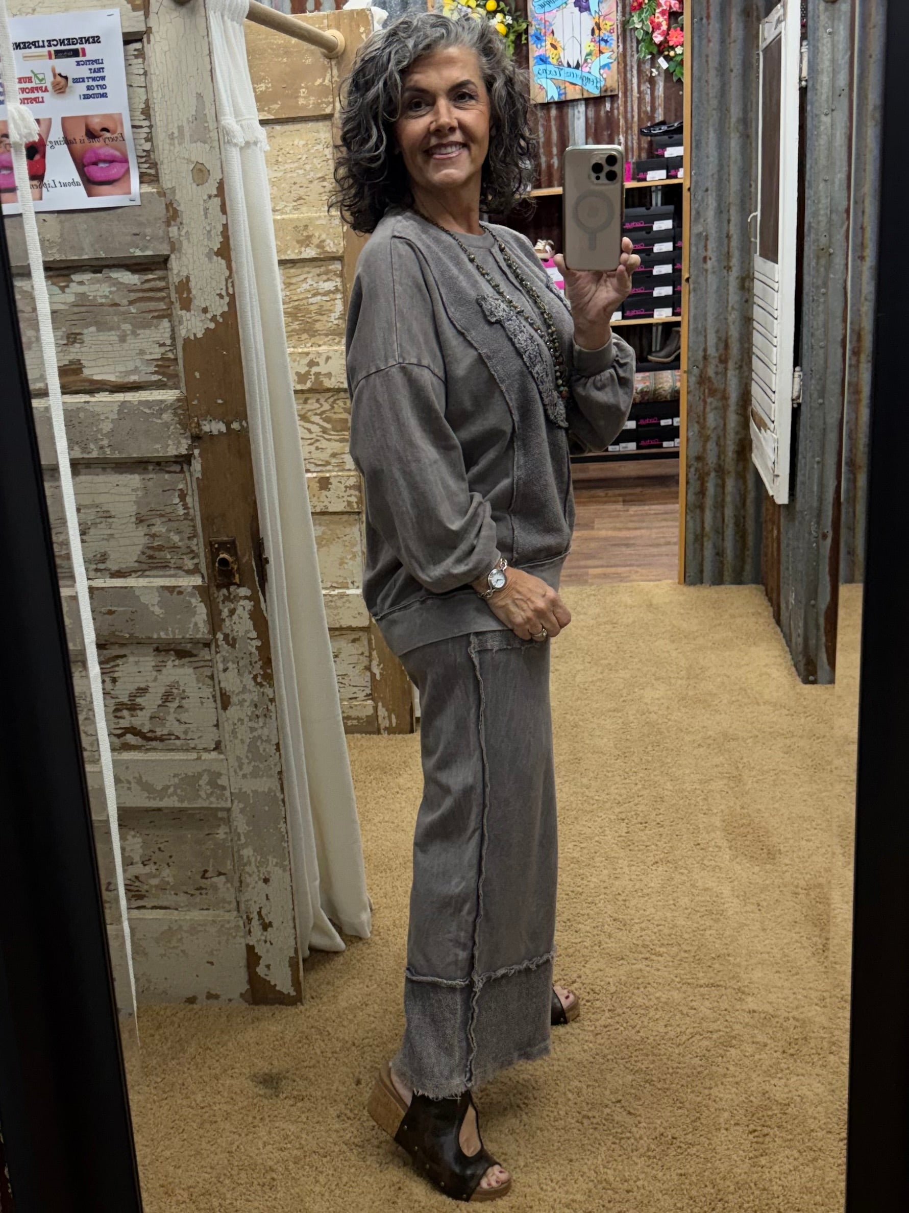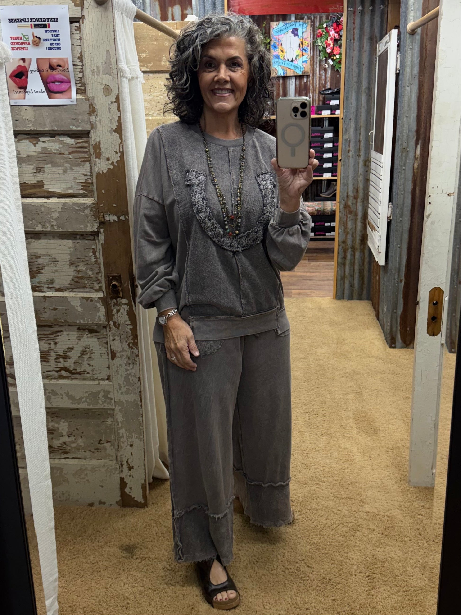 Throw on effortless style with this mineral-washed horseshoe sweatshirt set. No more morning wardrobe debates—everything coordinates perfectly, so you can grab and go. The soft, lived-in finish pairs comfort with that coveted vintage vibe. Perfect for those days when looking put-together matters, but thinking too hard doesn't.