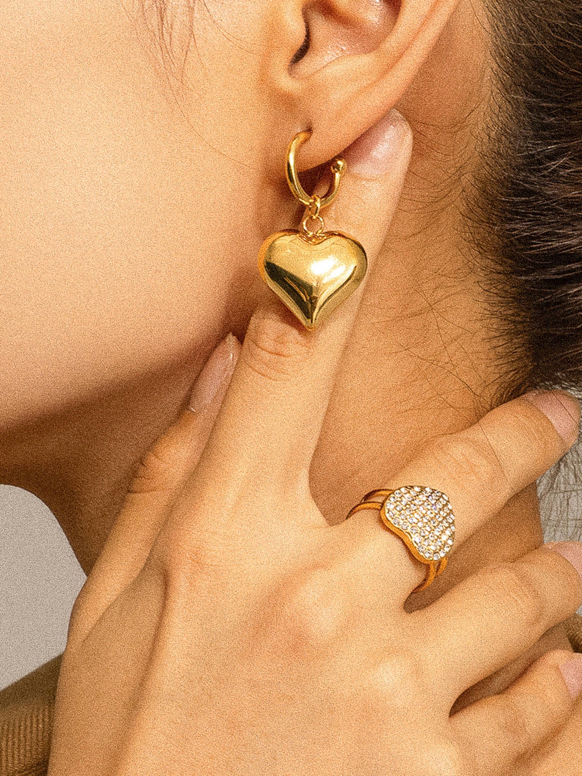 Viona 18K Non-Tarnish Dangle Heart Earring: Yellow Gold